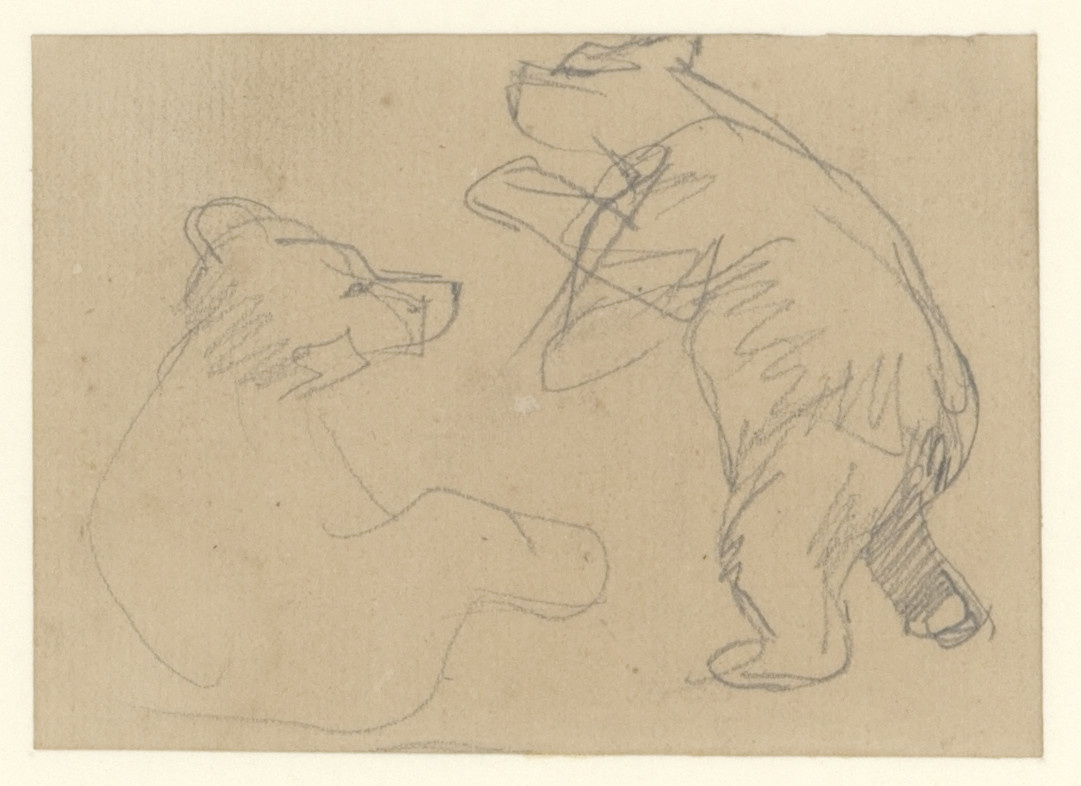 Studie van twee bruine beren (recto). Dierstudie (ve...