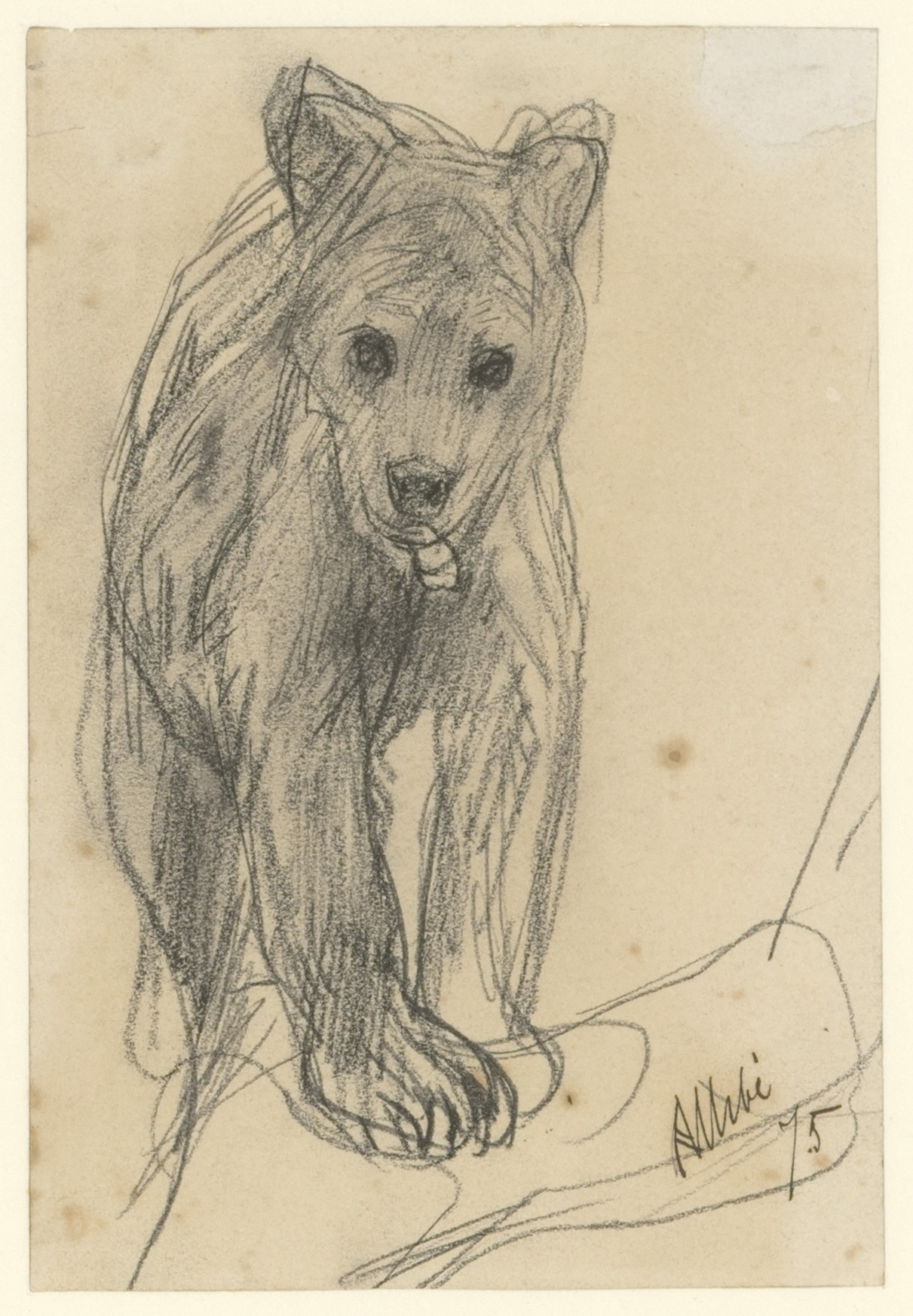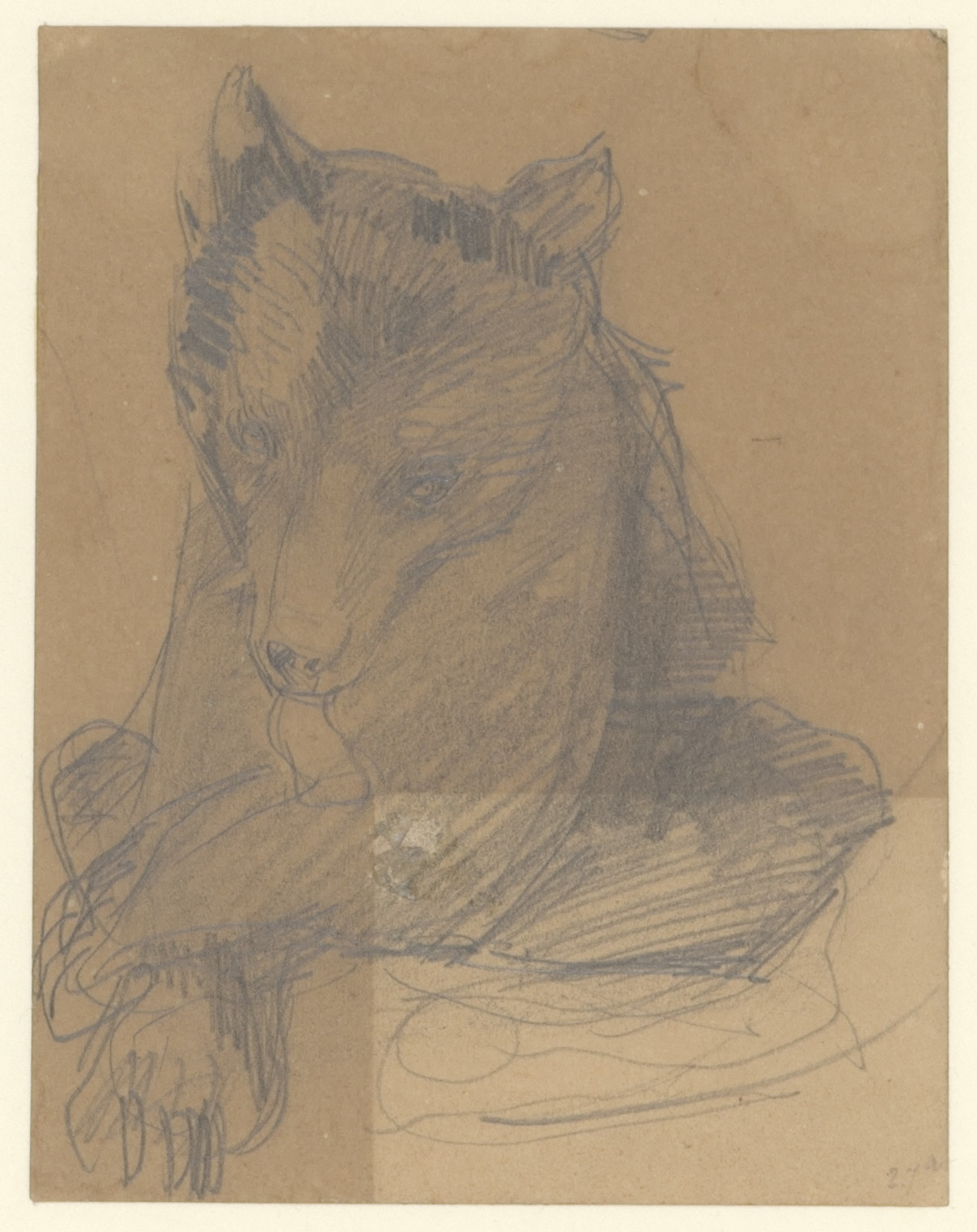 Studie van een jonge bruine beer (recto). Dierstudie...