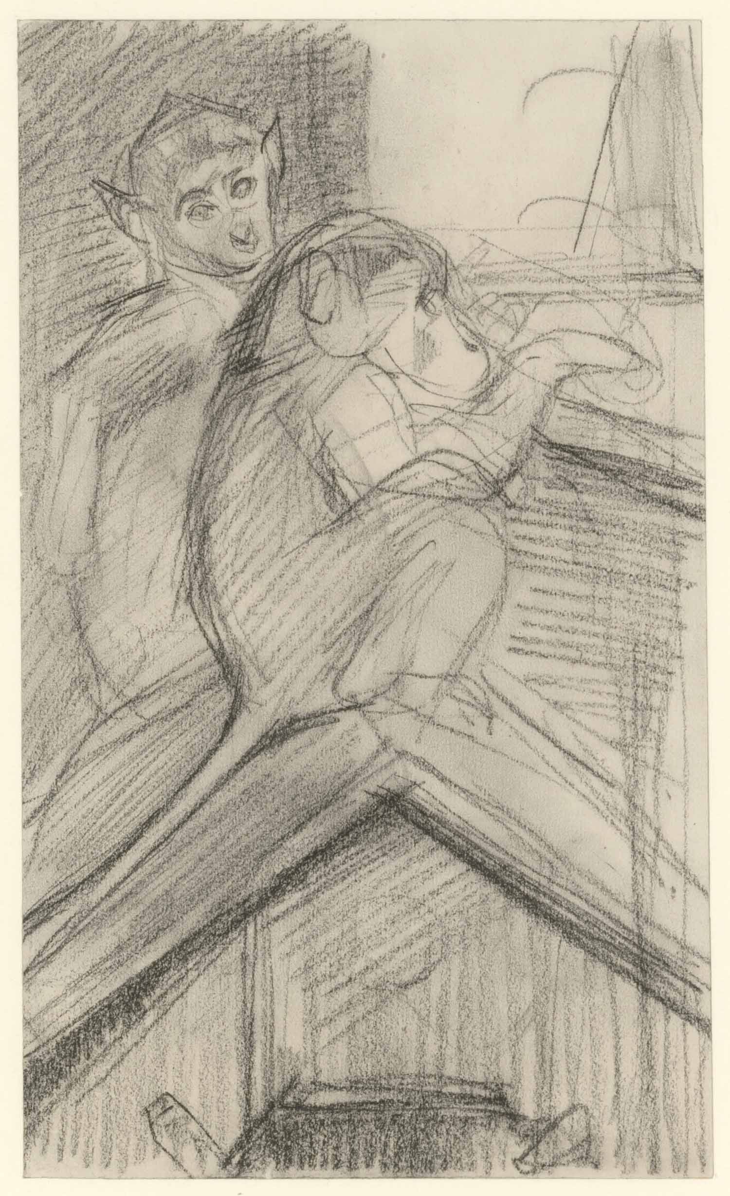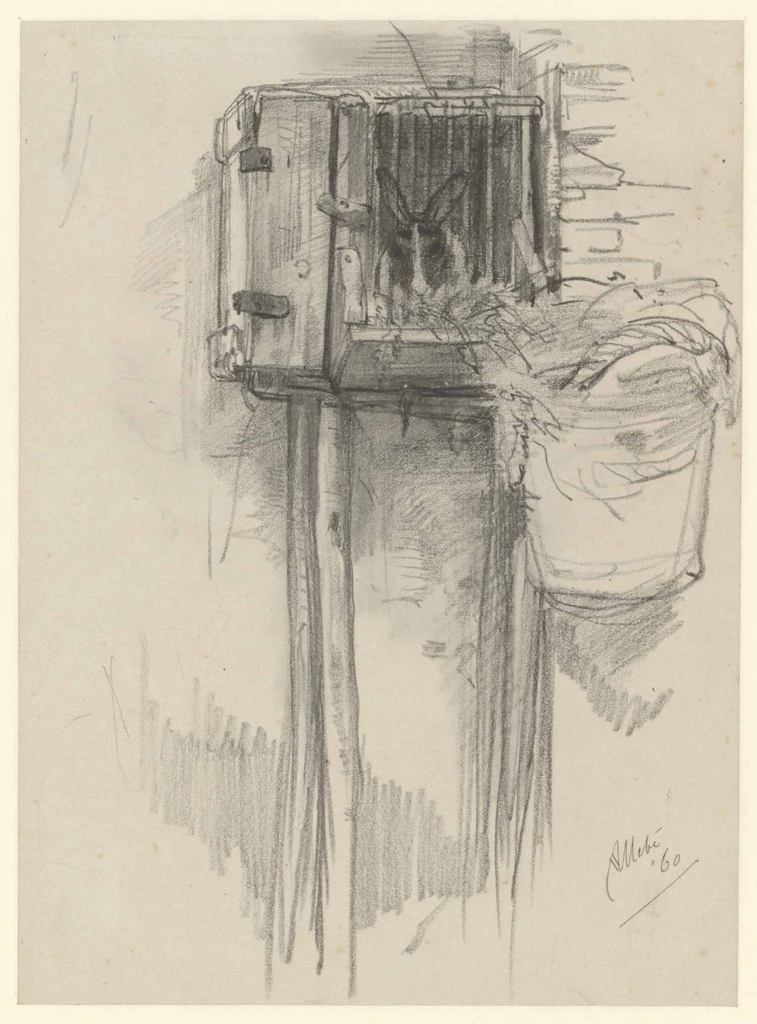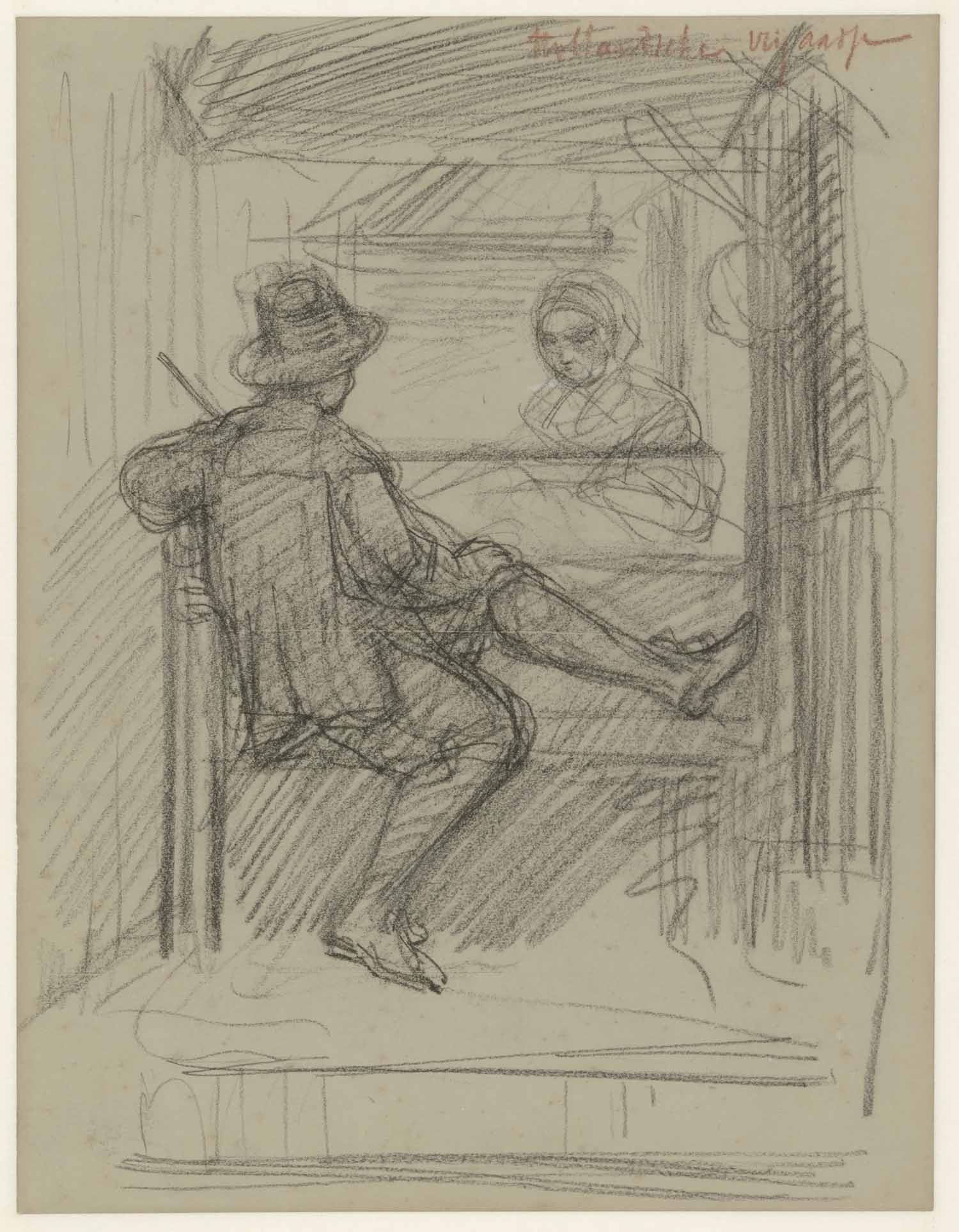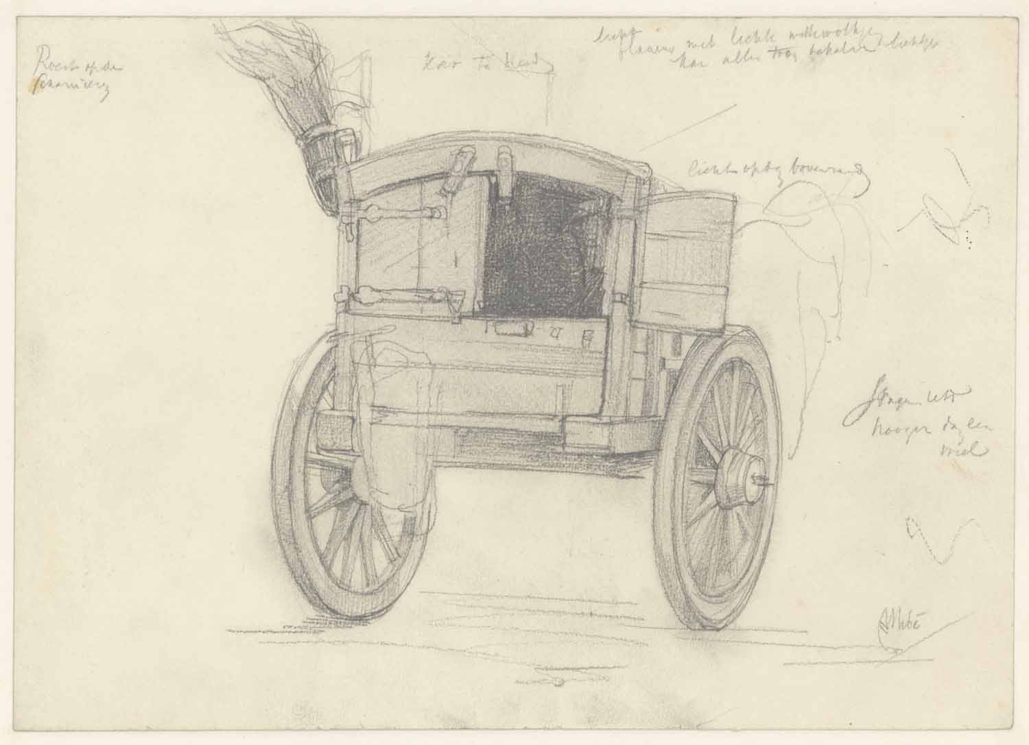 De kar van den straatveger. Een zittende leeuw (verso)