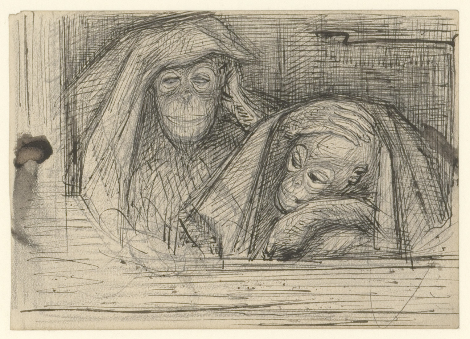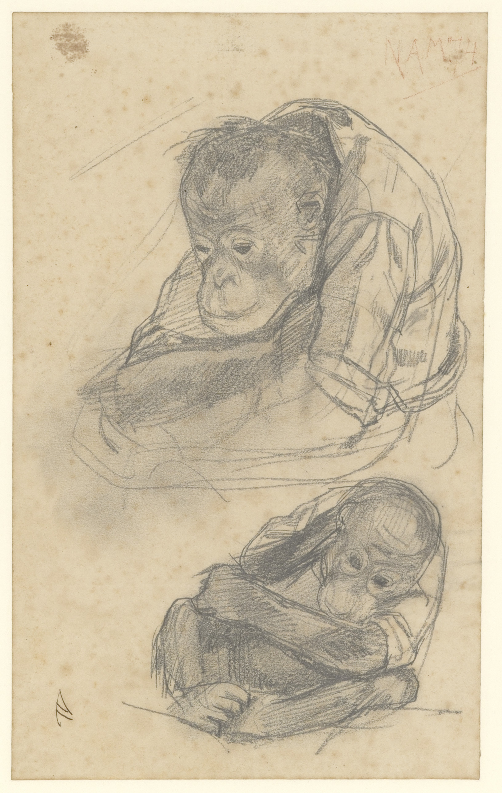 Studie van twee Orang oetans (recto). Dierstudie (ve...