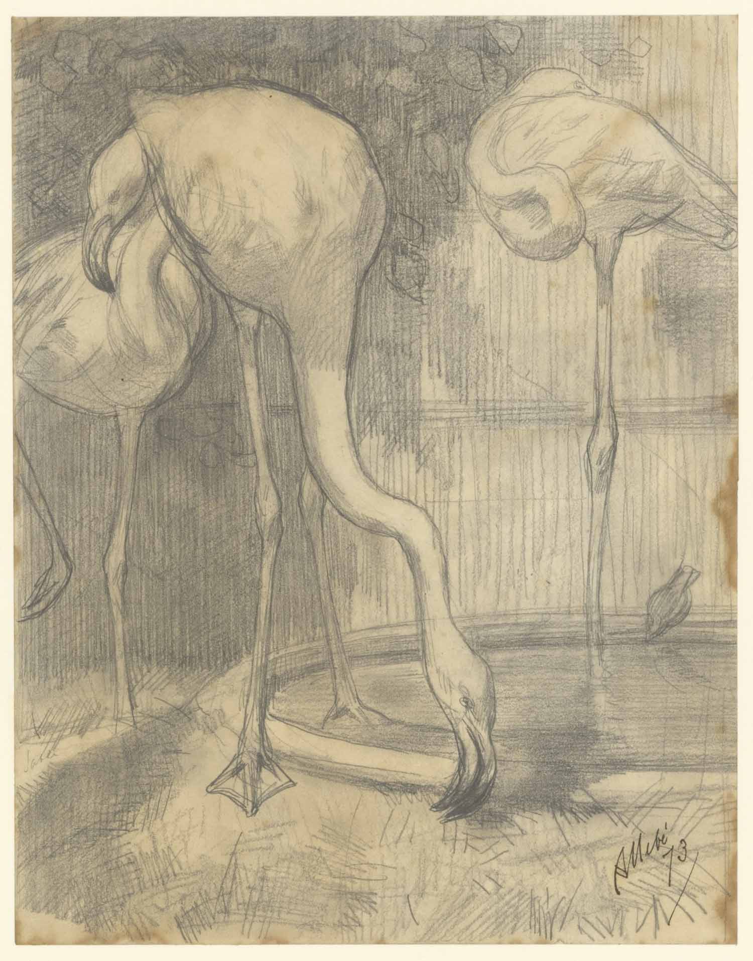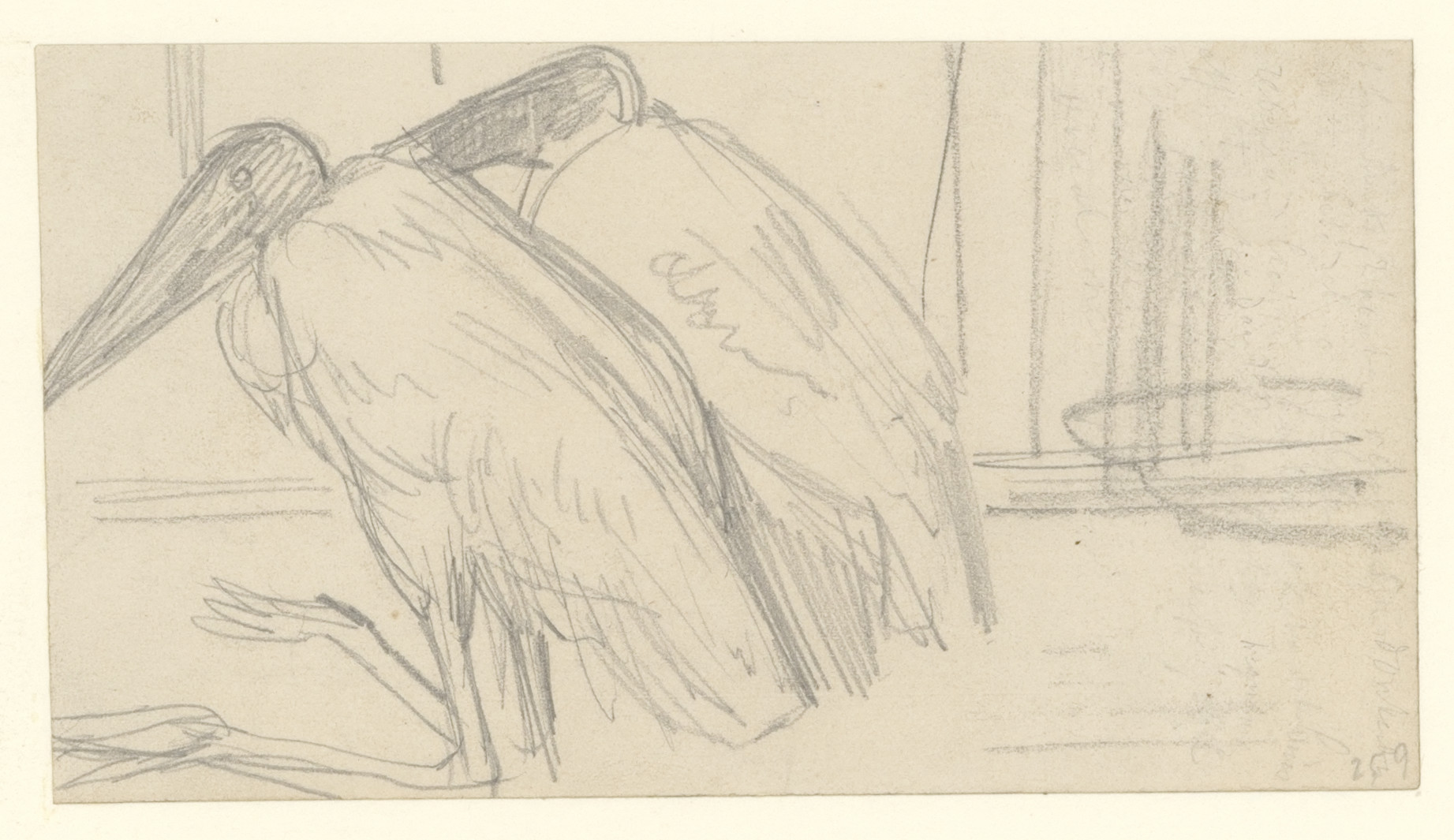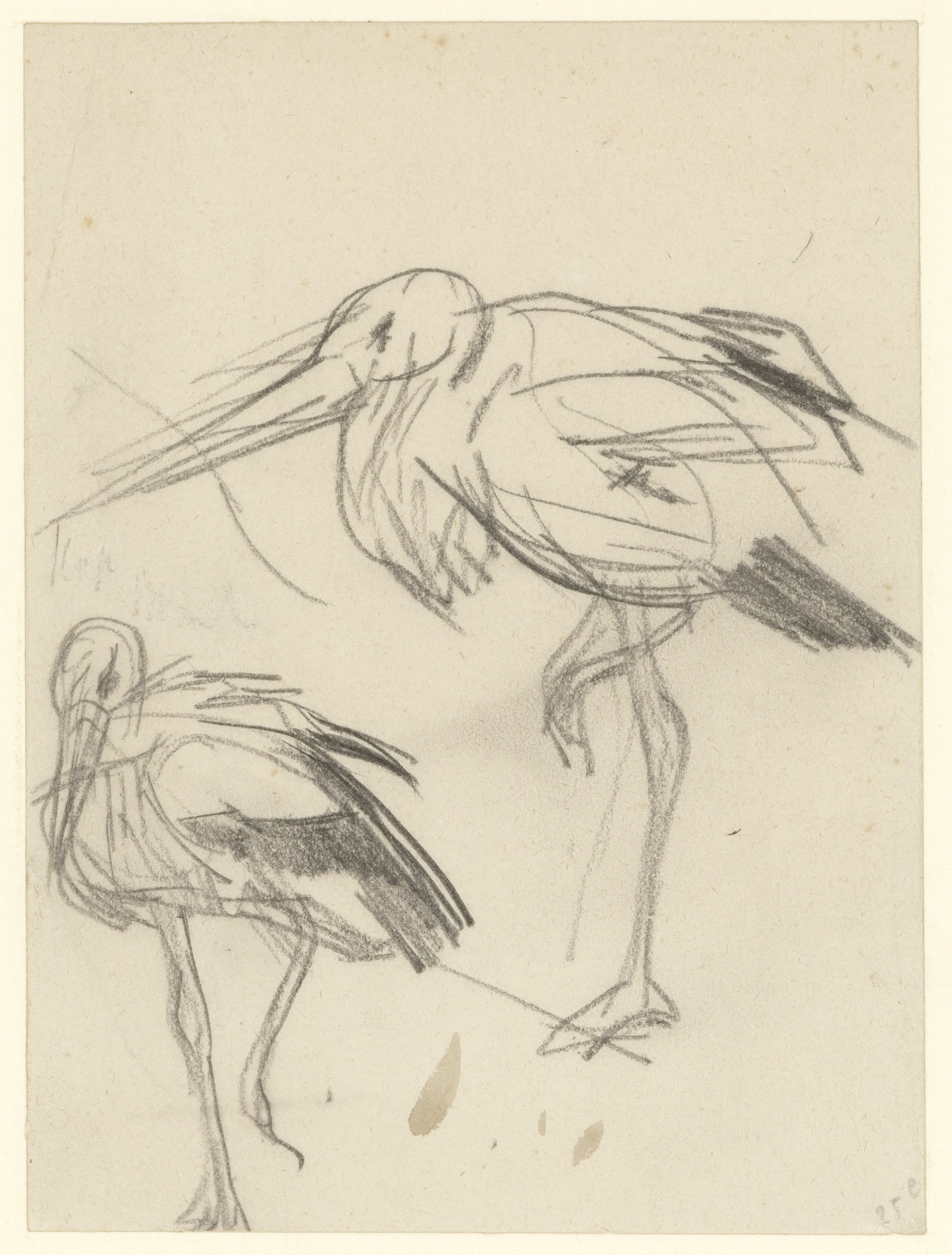 Studie van twee maraboes (recto). Dierstudie (verso)