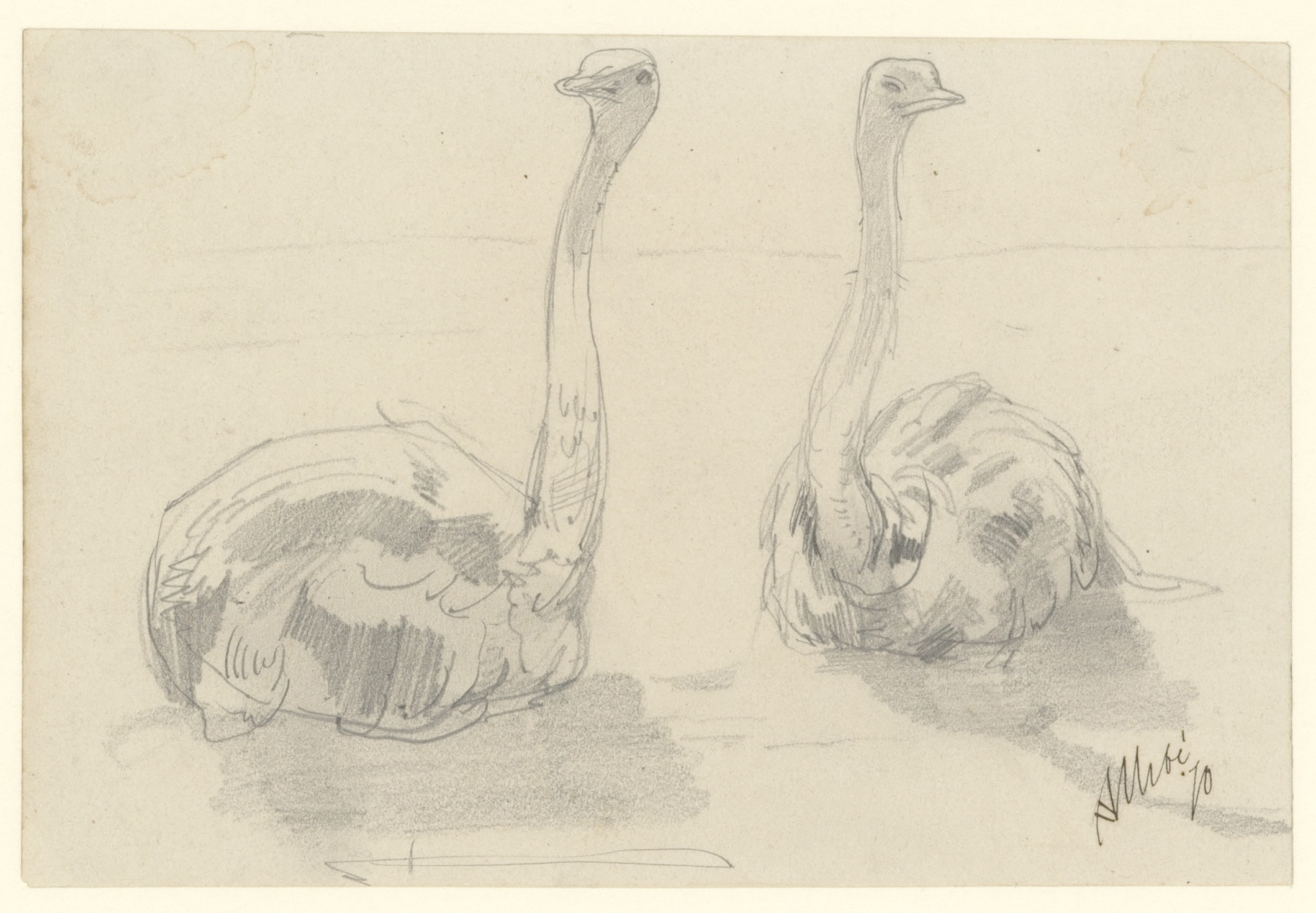 Studie van een struisvogel (recto). Studie van twee ...