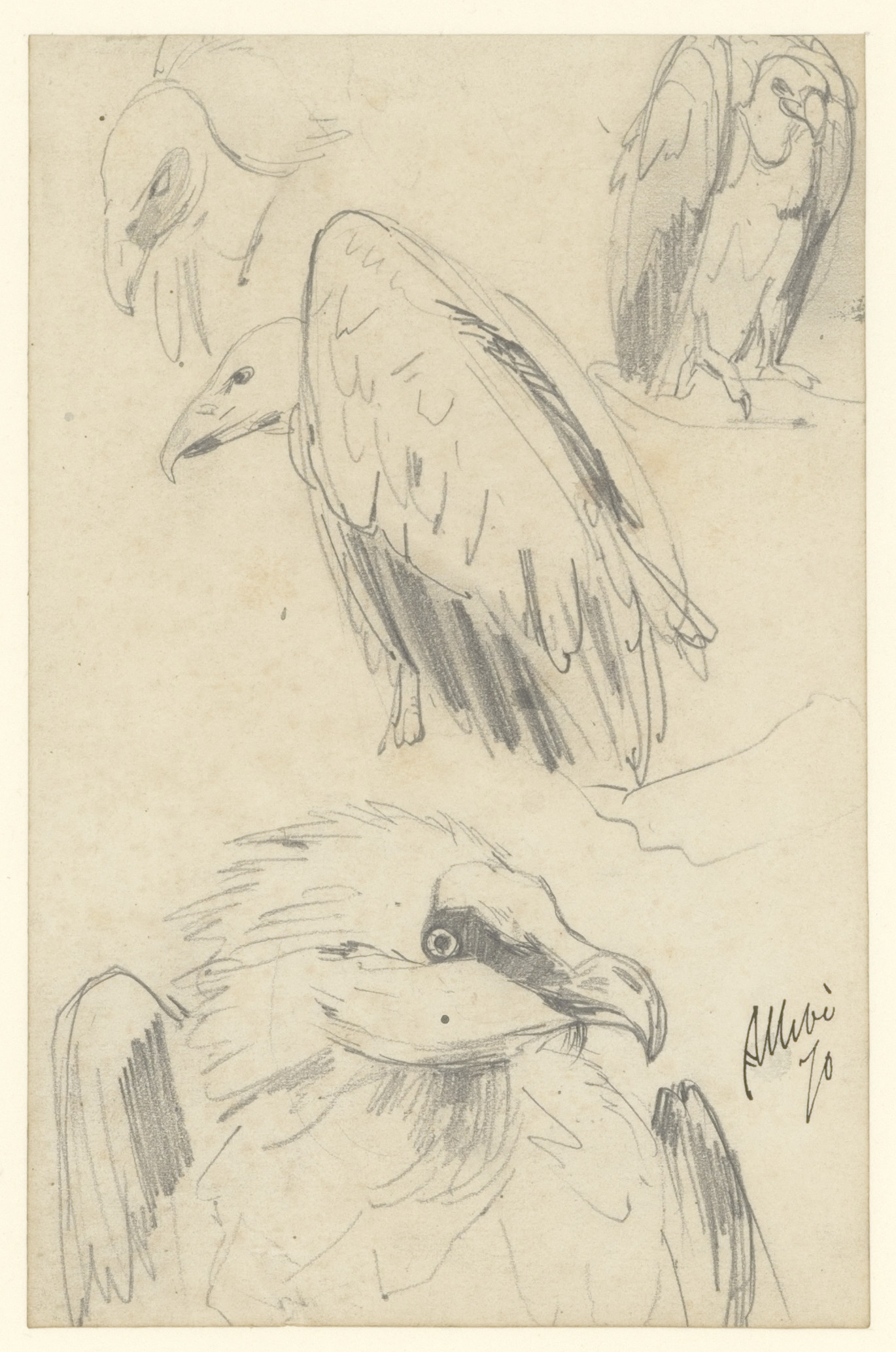Studie van een lammergier (recto). Dierstudie (verso)