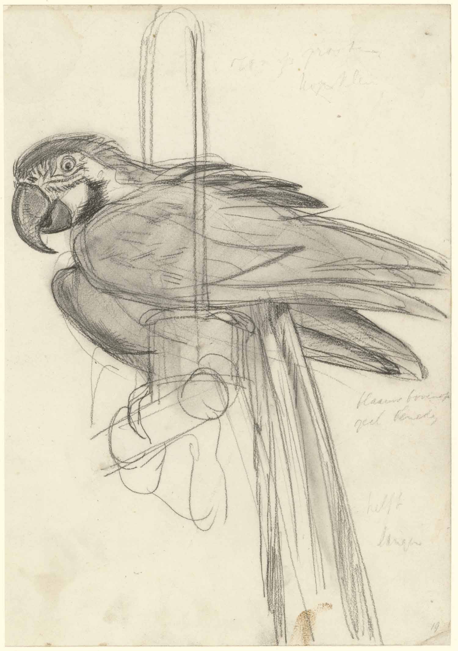Papegaai. (ara) (recto) Studie van papegaai (verso)