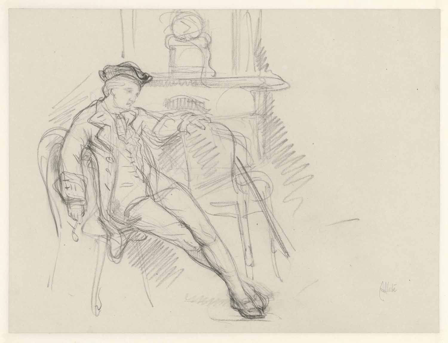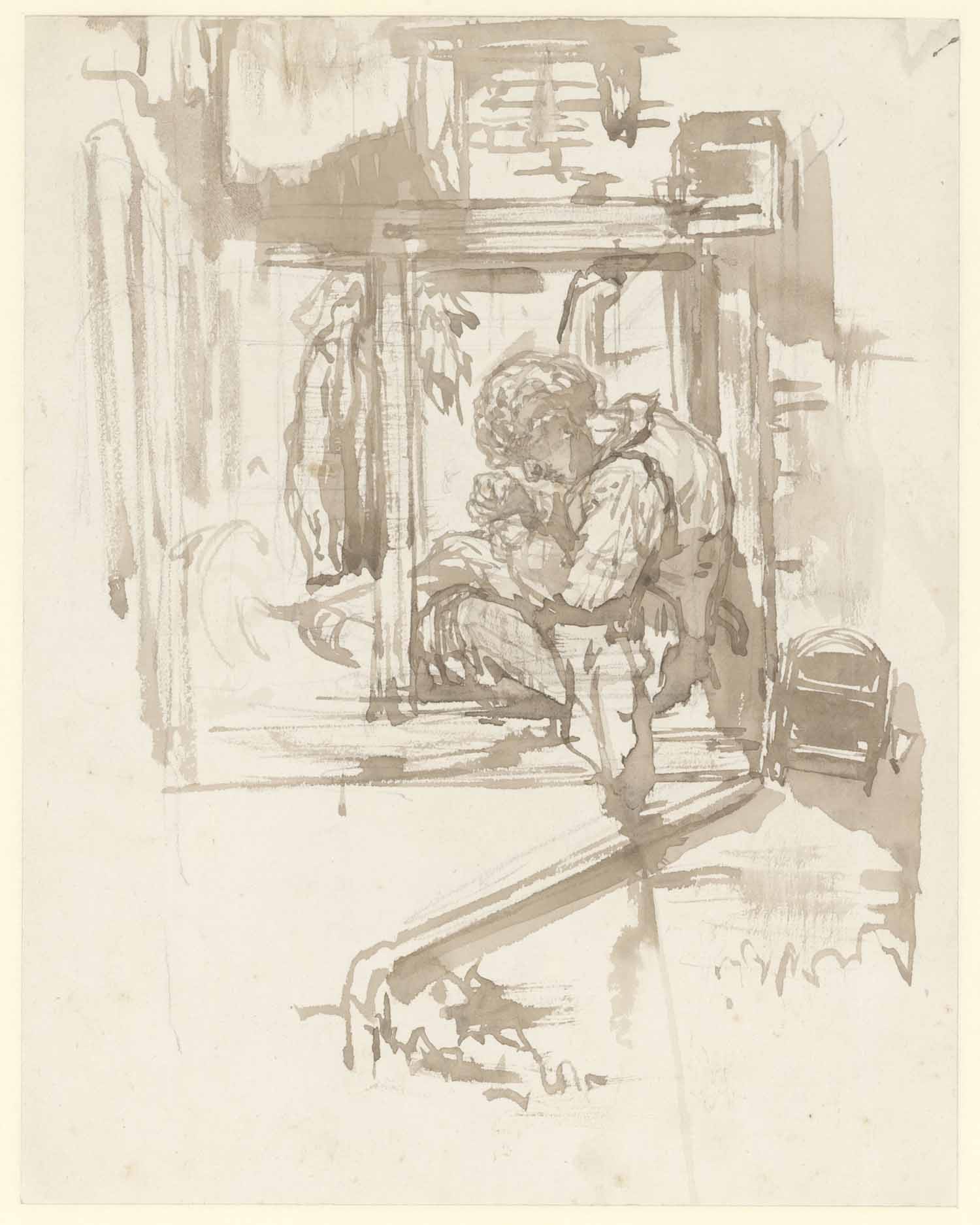 "Hollandsche vryaadje". Hurkende figuur (verso)