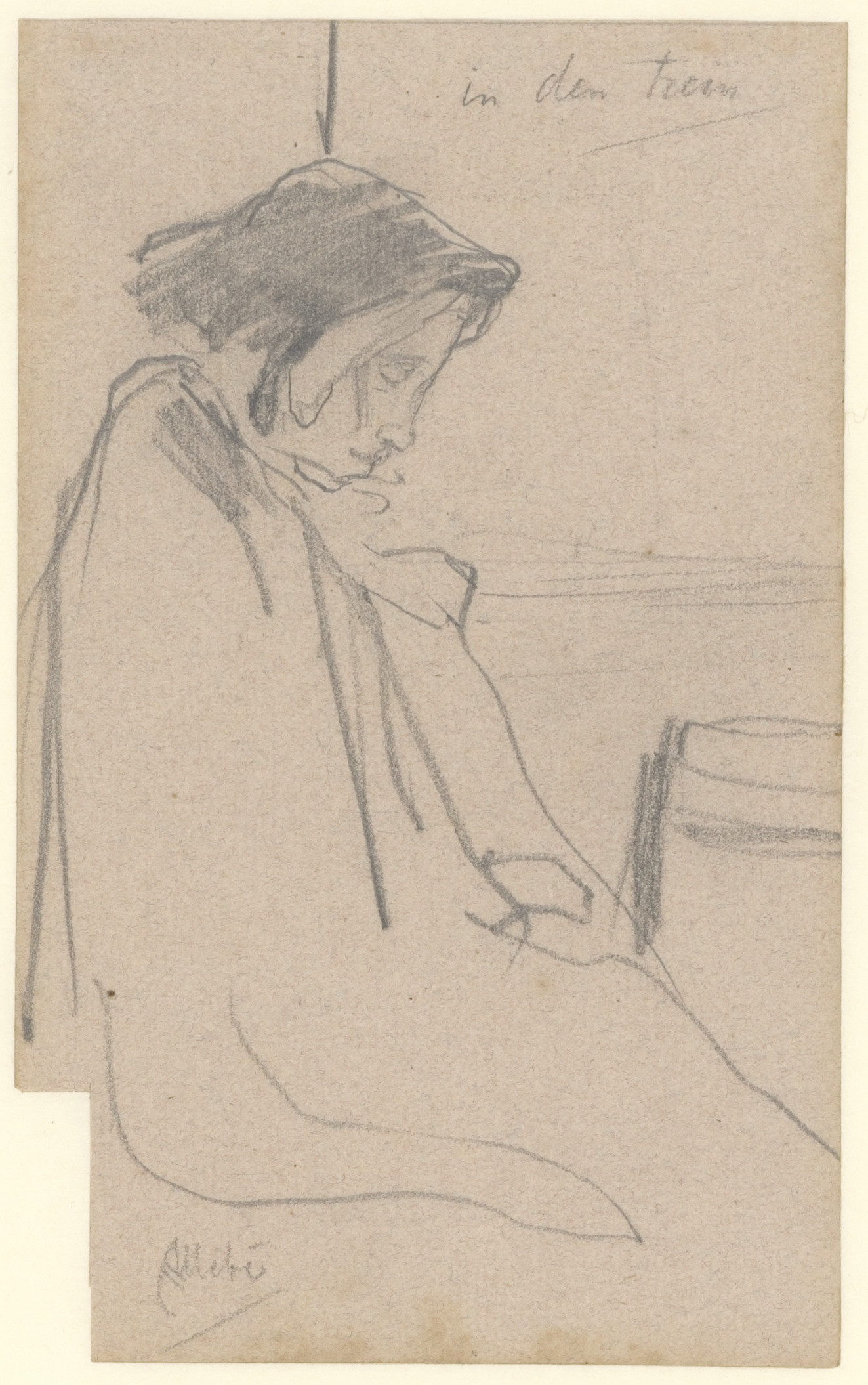 "In de trein" slapende oude vrouw