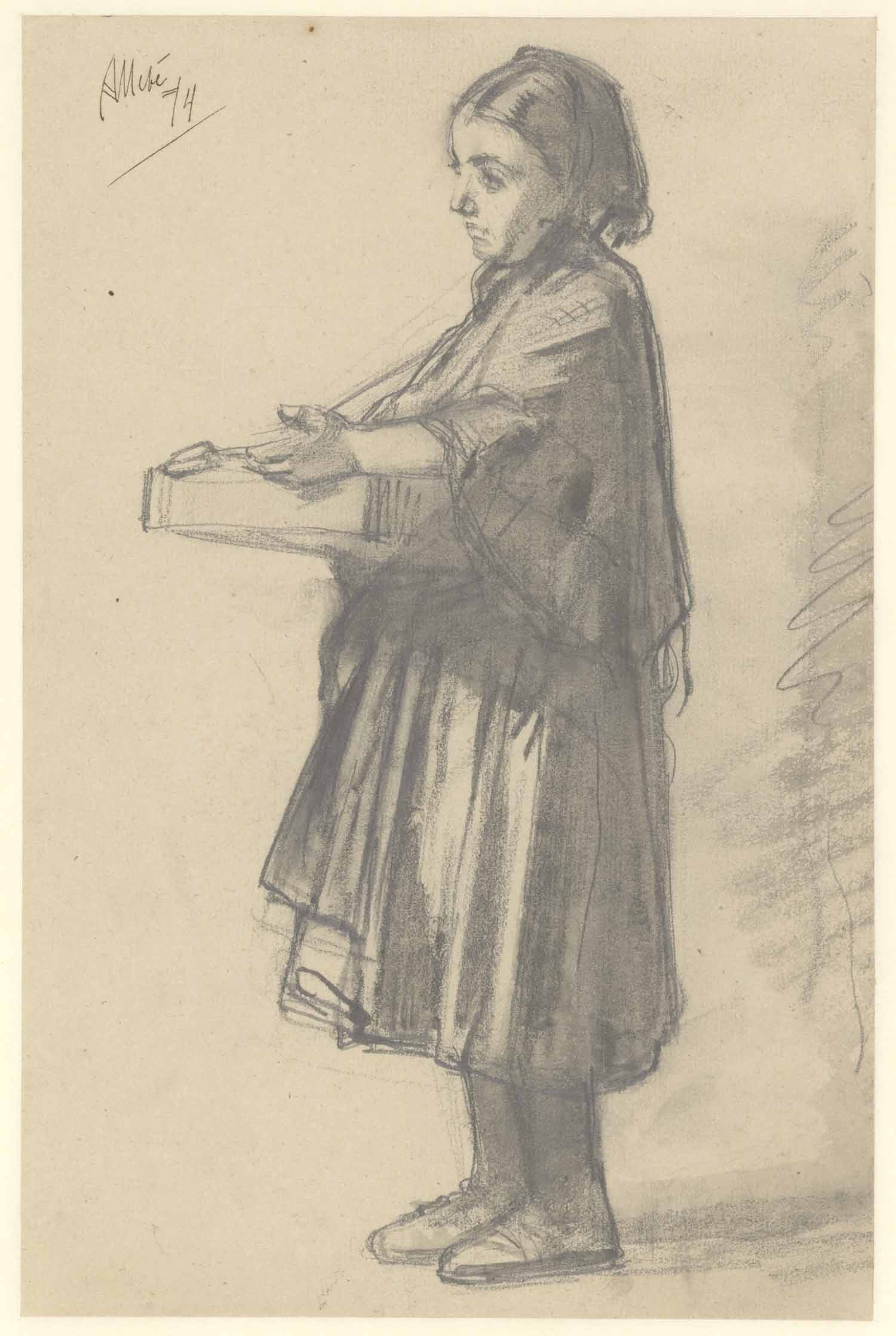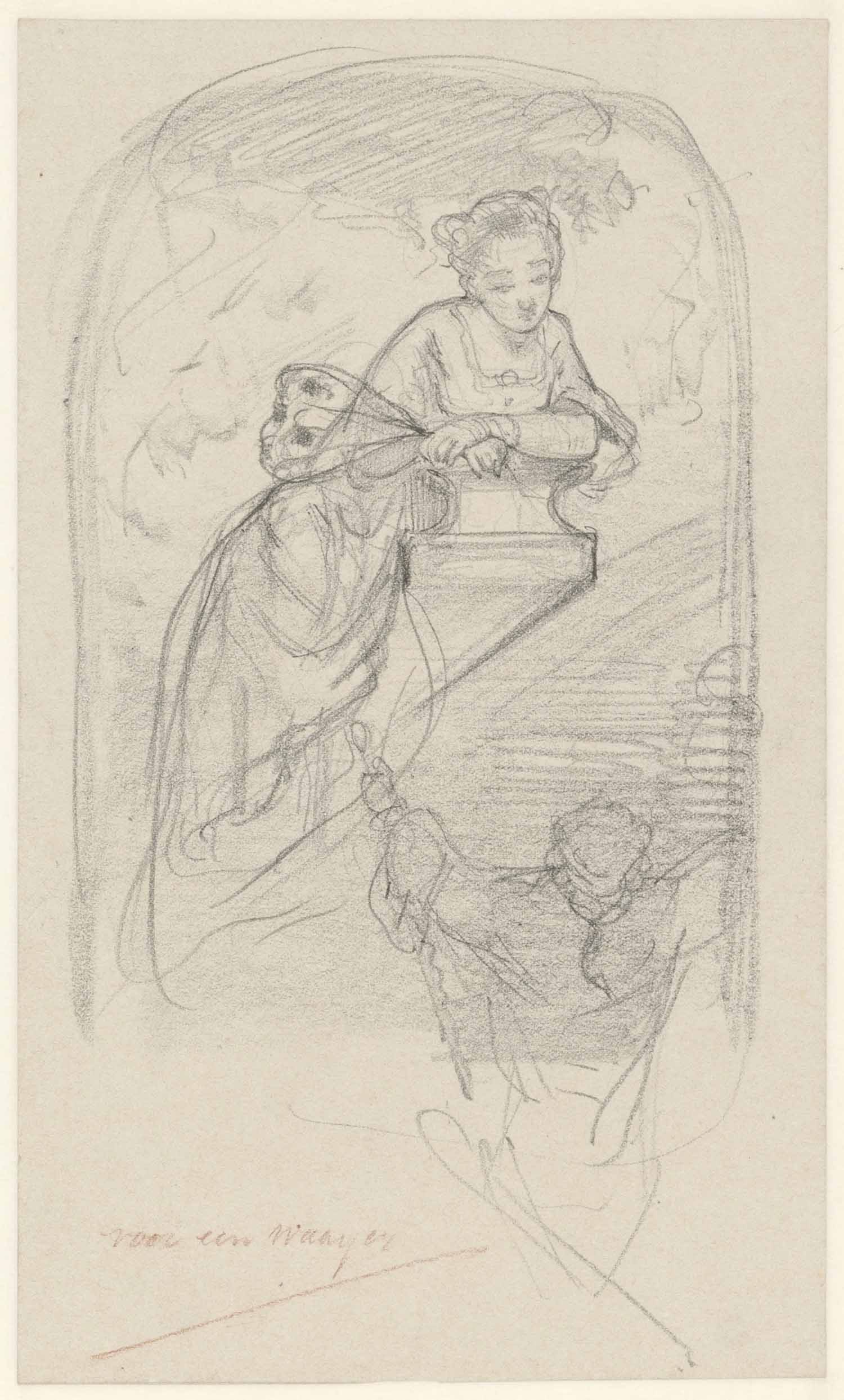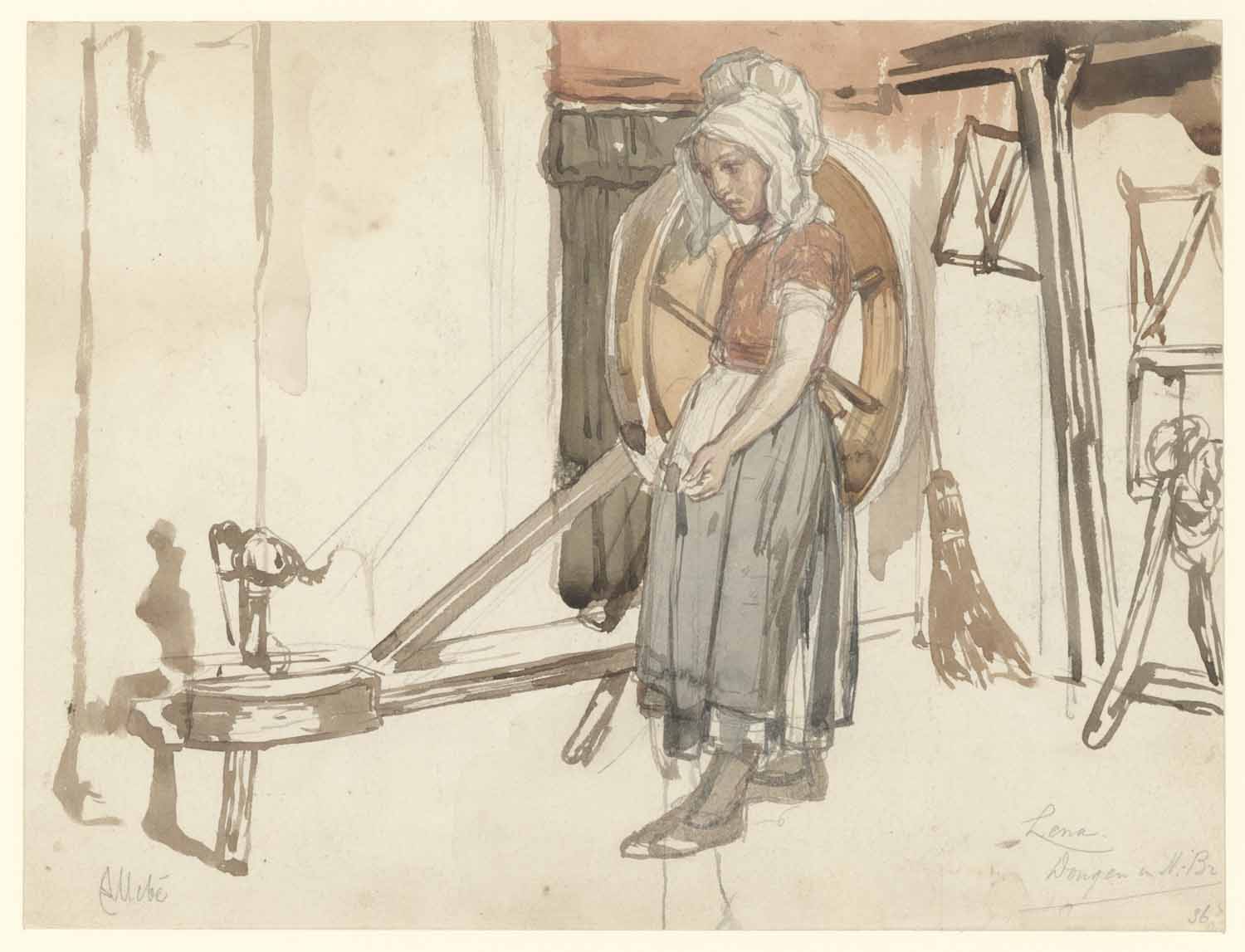 'Lena', Dongens meisje bij spinnewiel (verso: weefst...