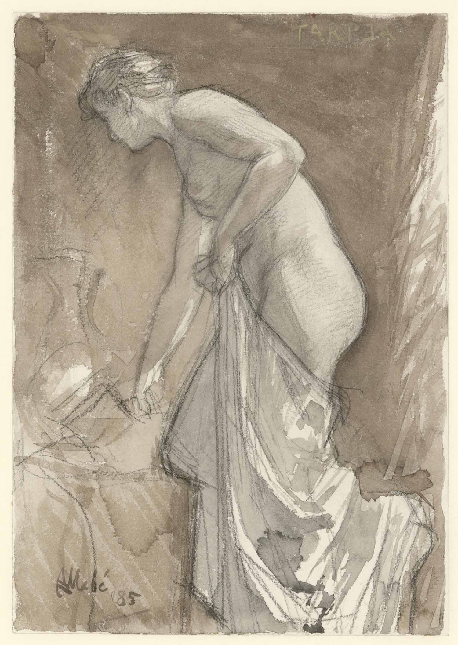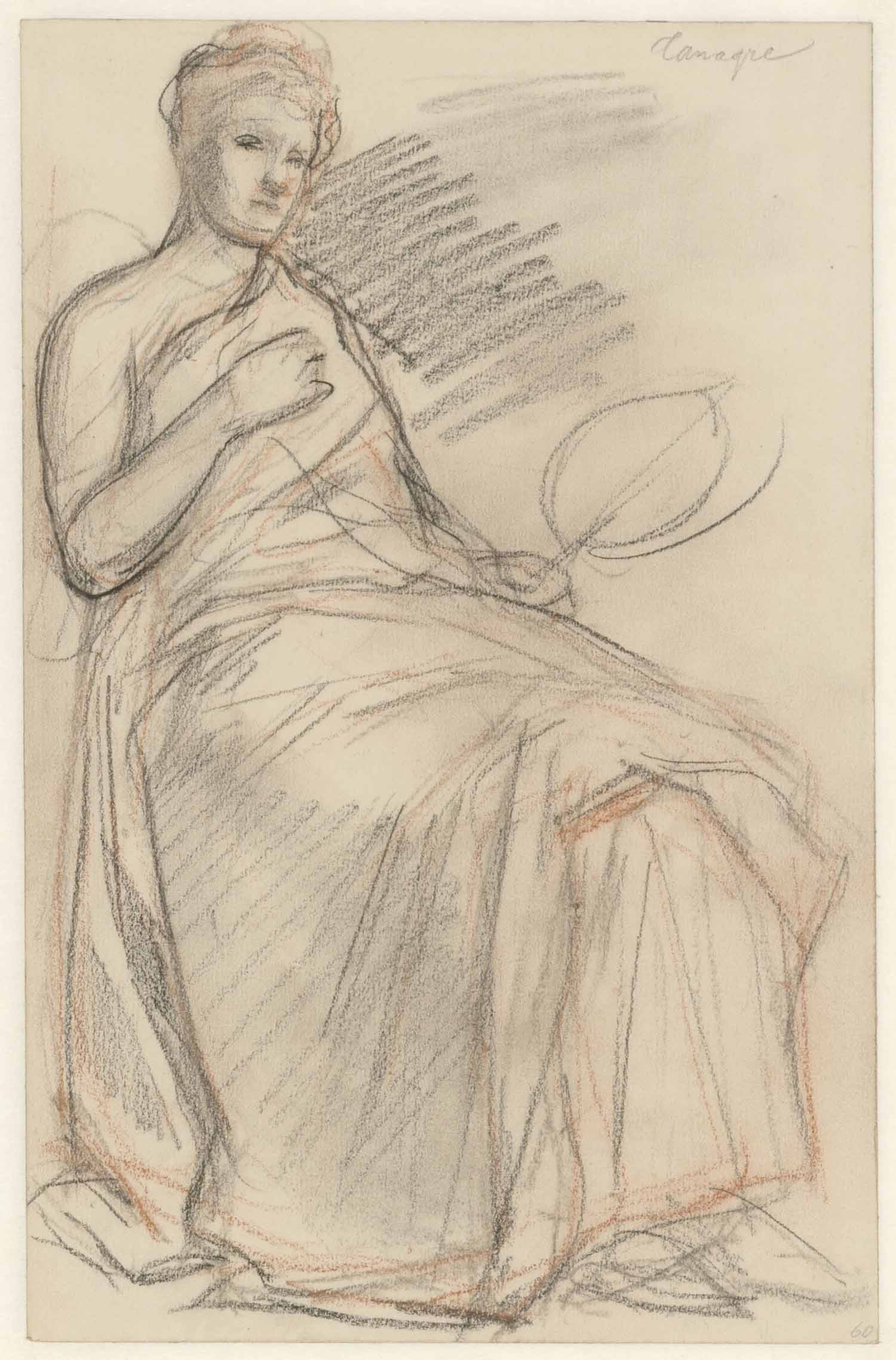 "Tanagre", zittend op een antieke stoel