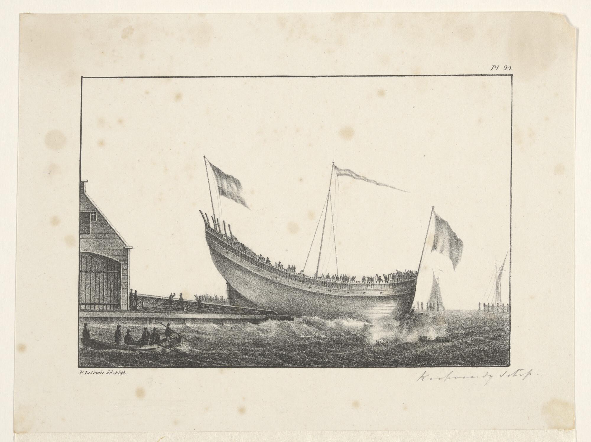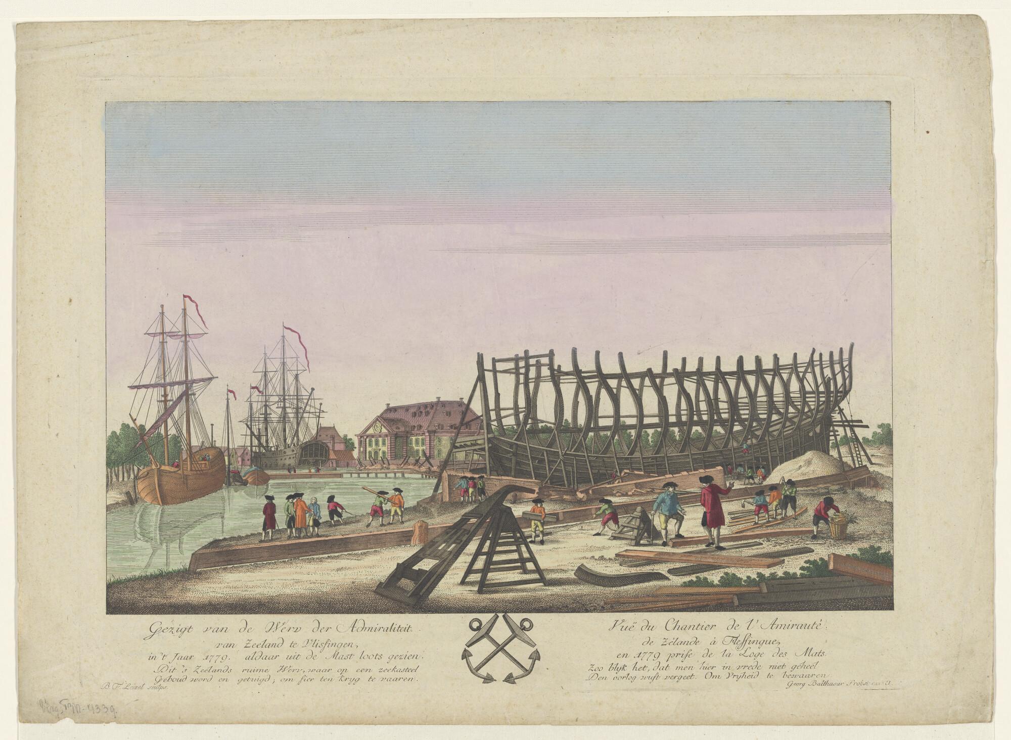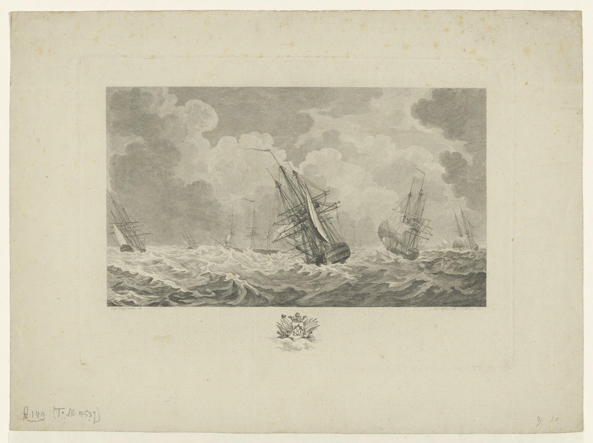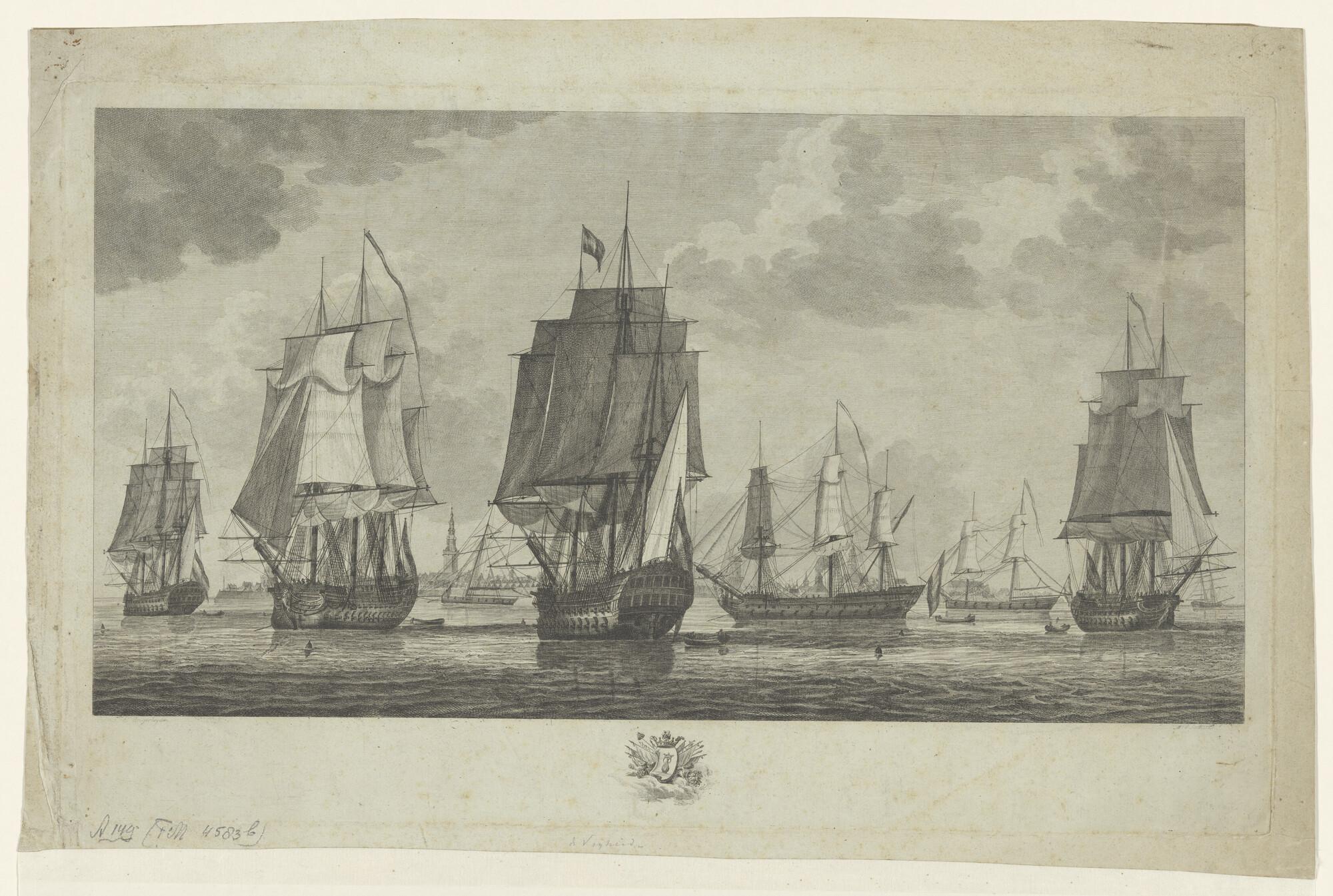 Het oorlogsschip 'Noord-Holland', na de storm in 1784