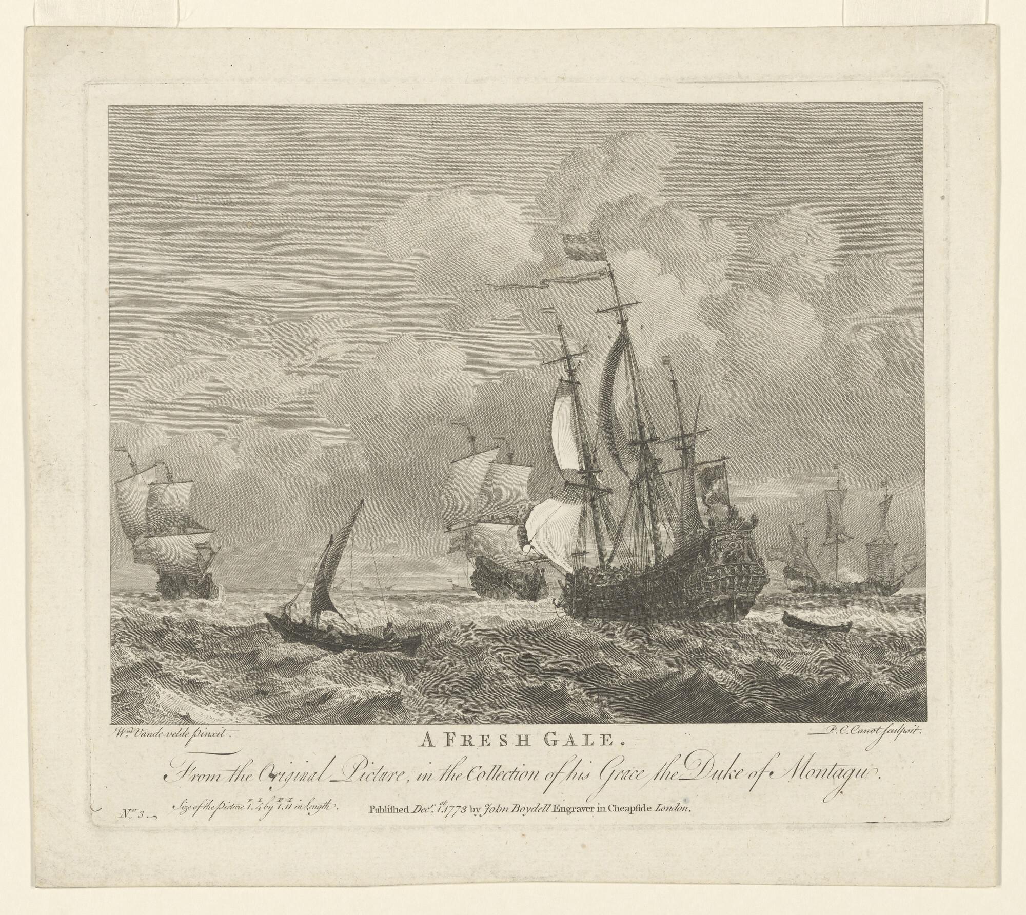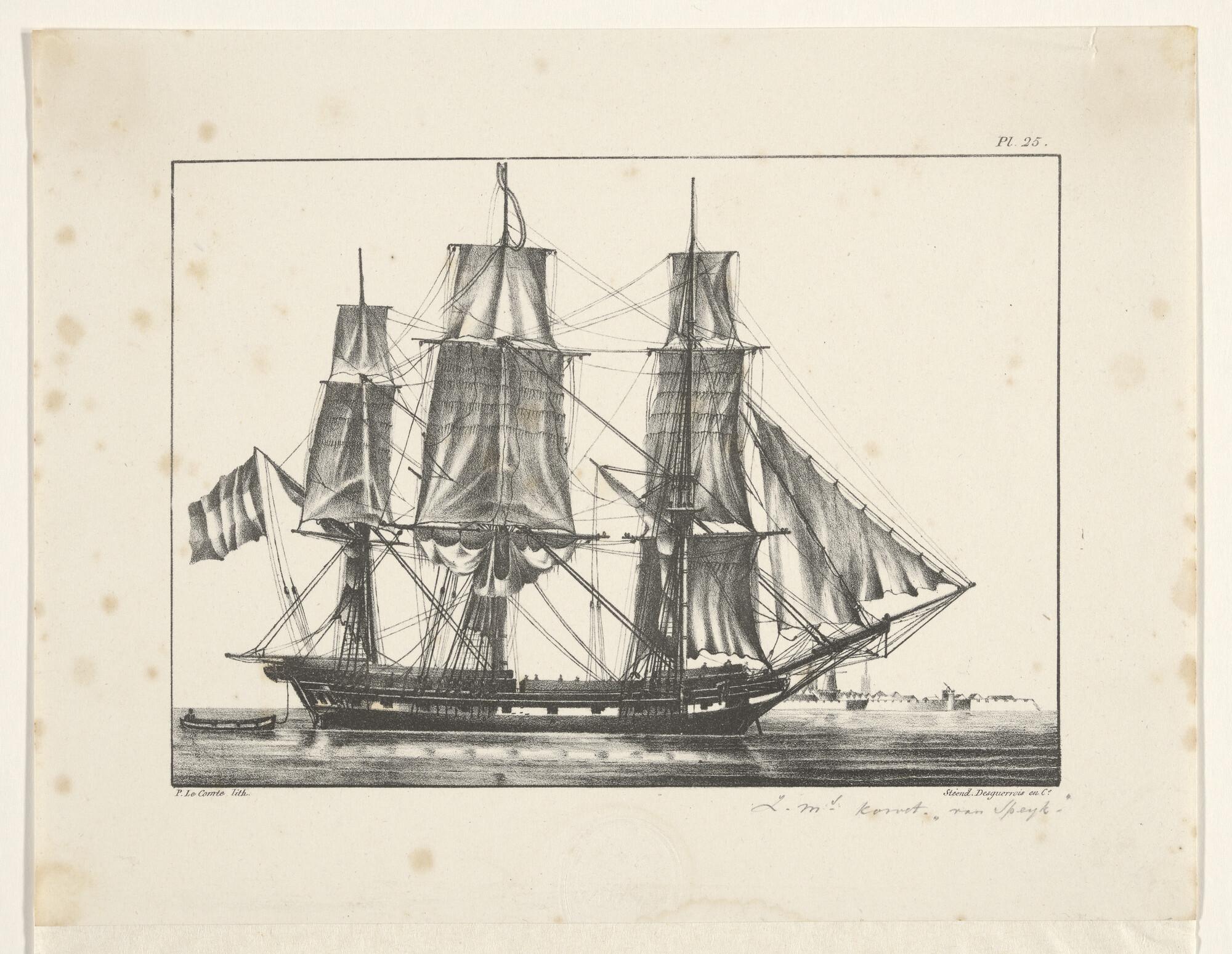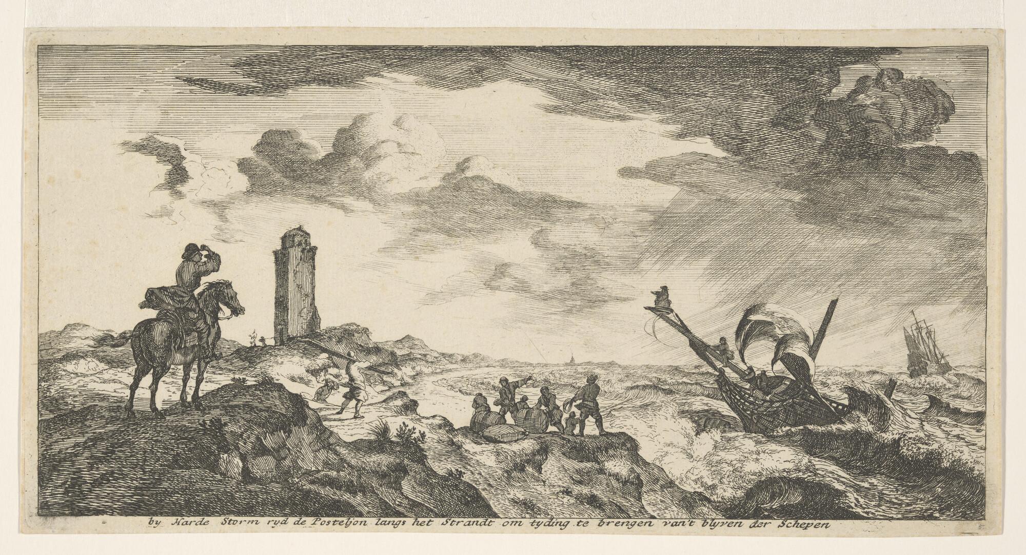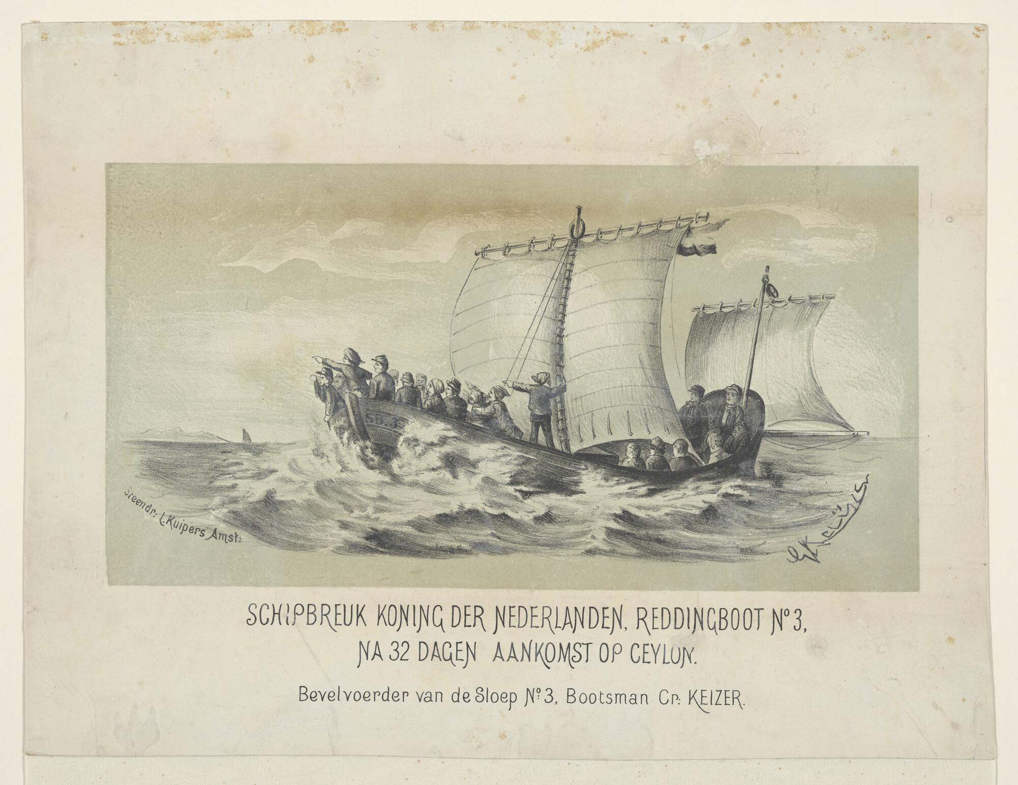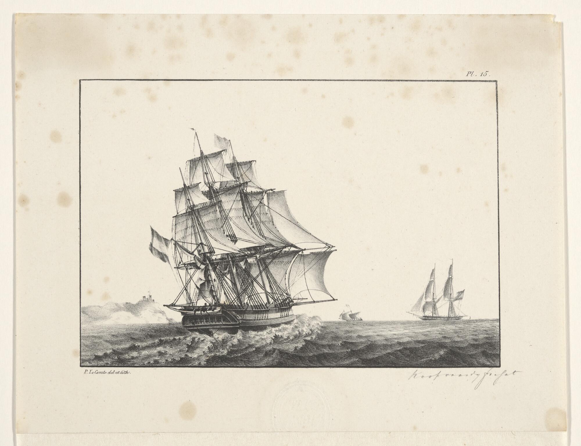 Het oorlogsschip 'Noord-Holland', na de storm in 1784