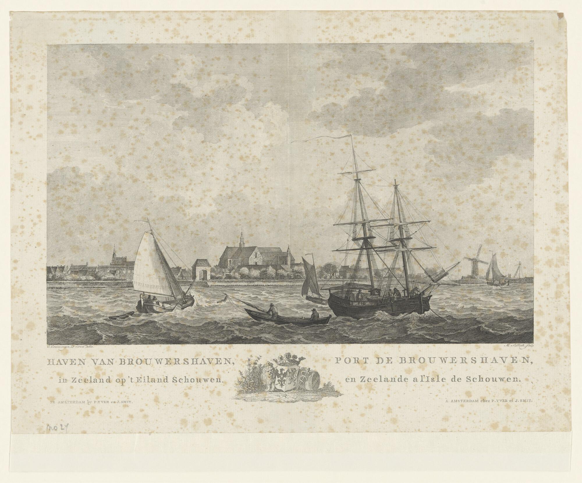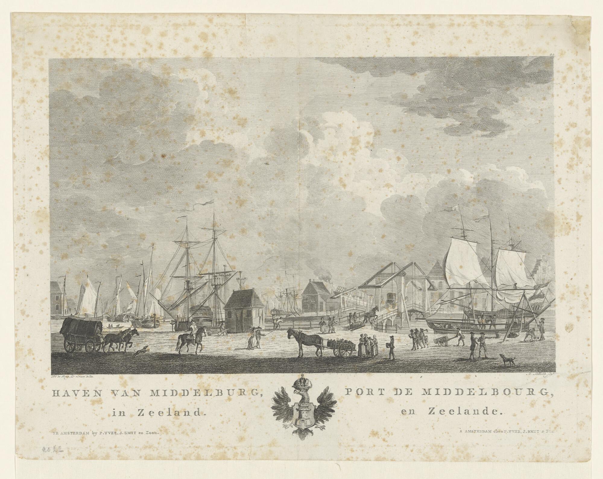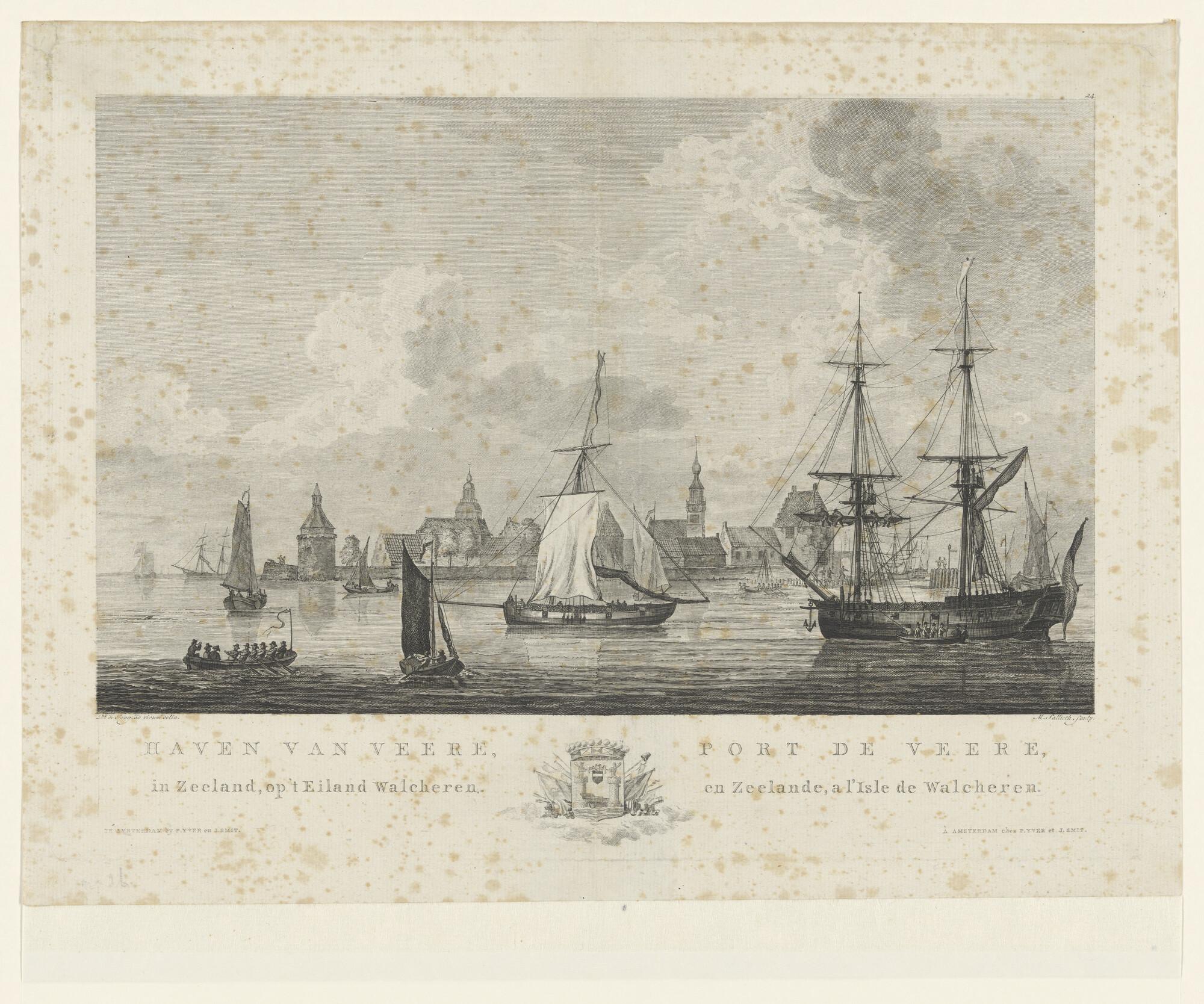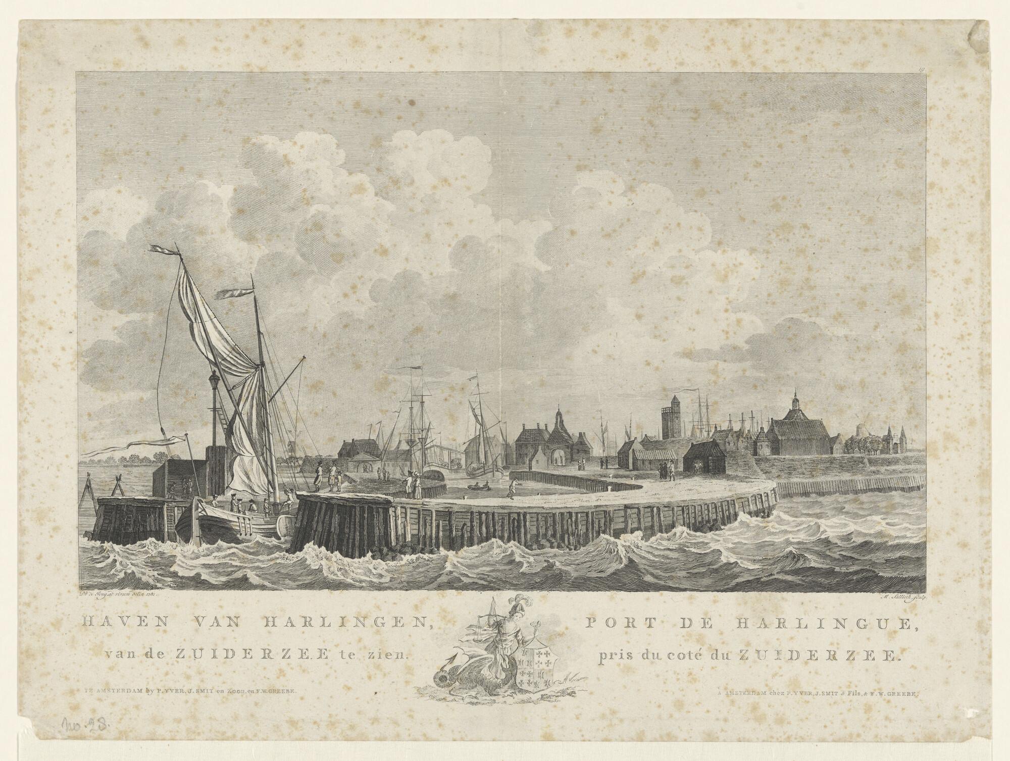 Een havengezicht, met rechts een woonhuis, waarbij e...