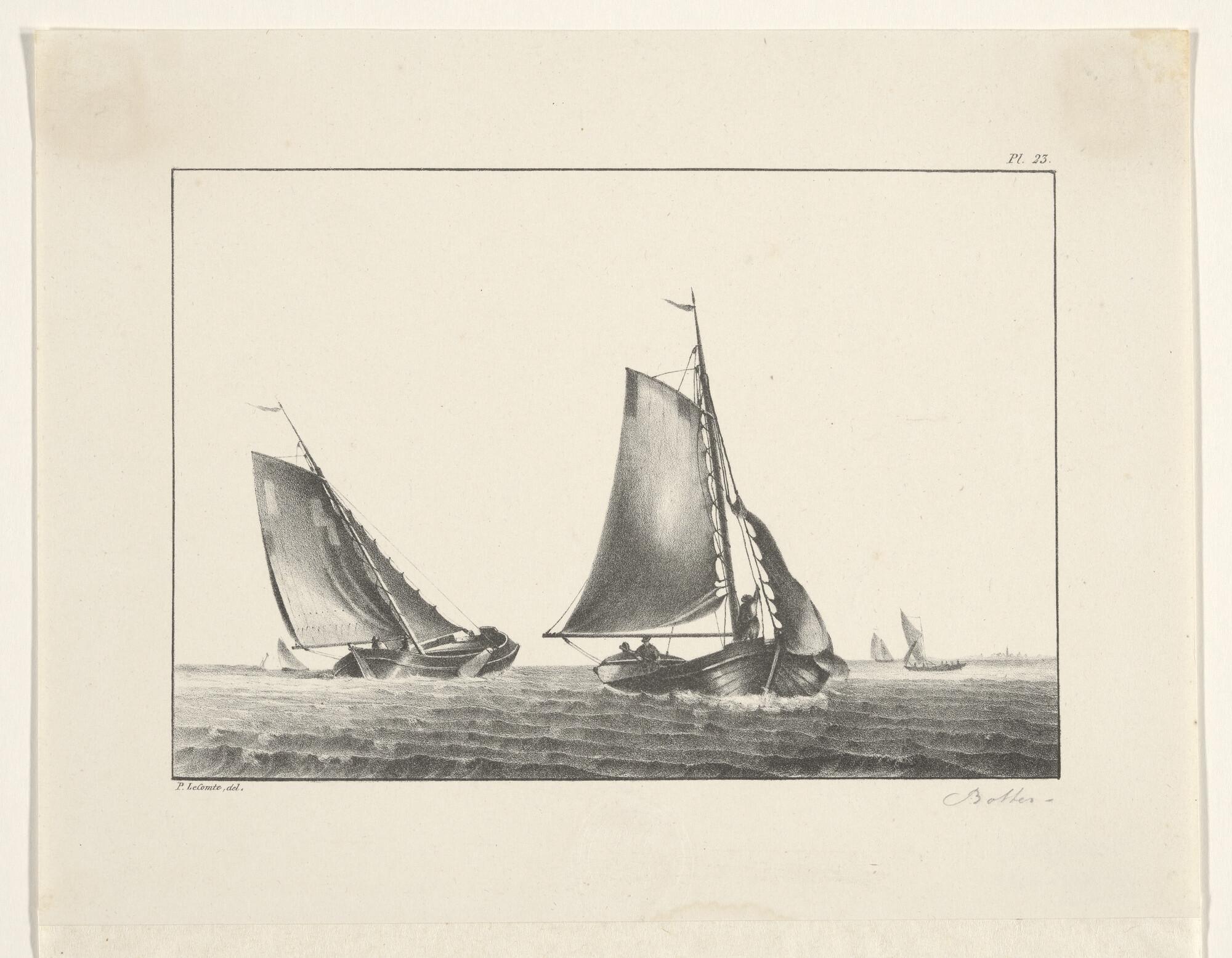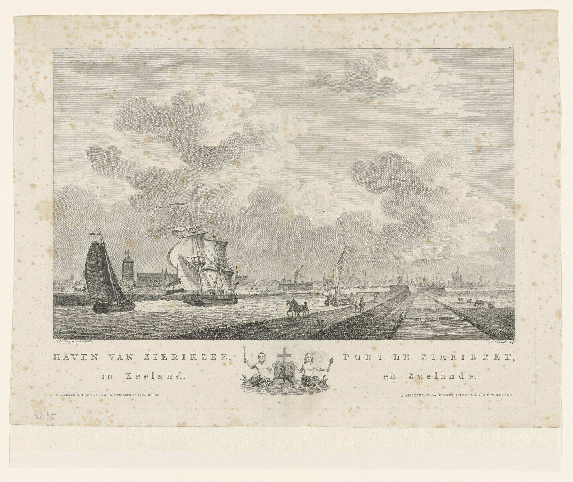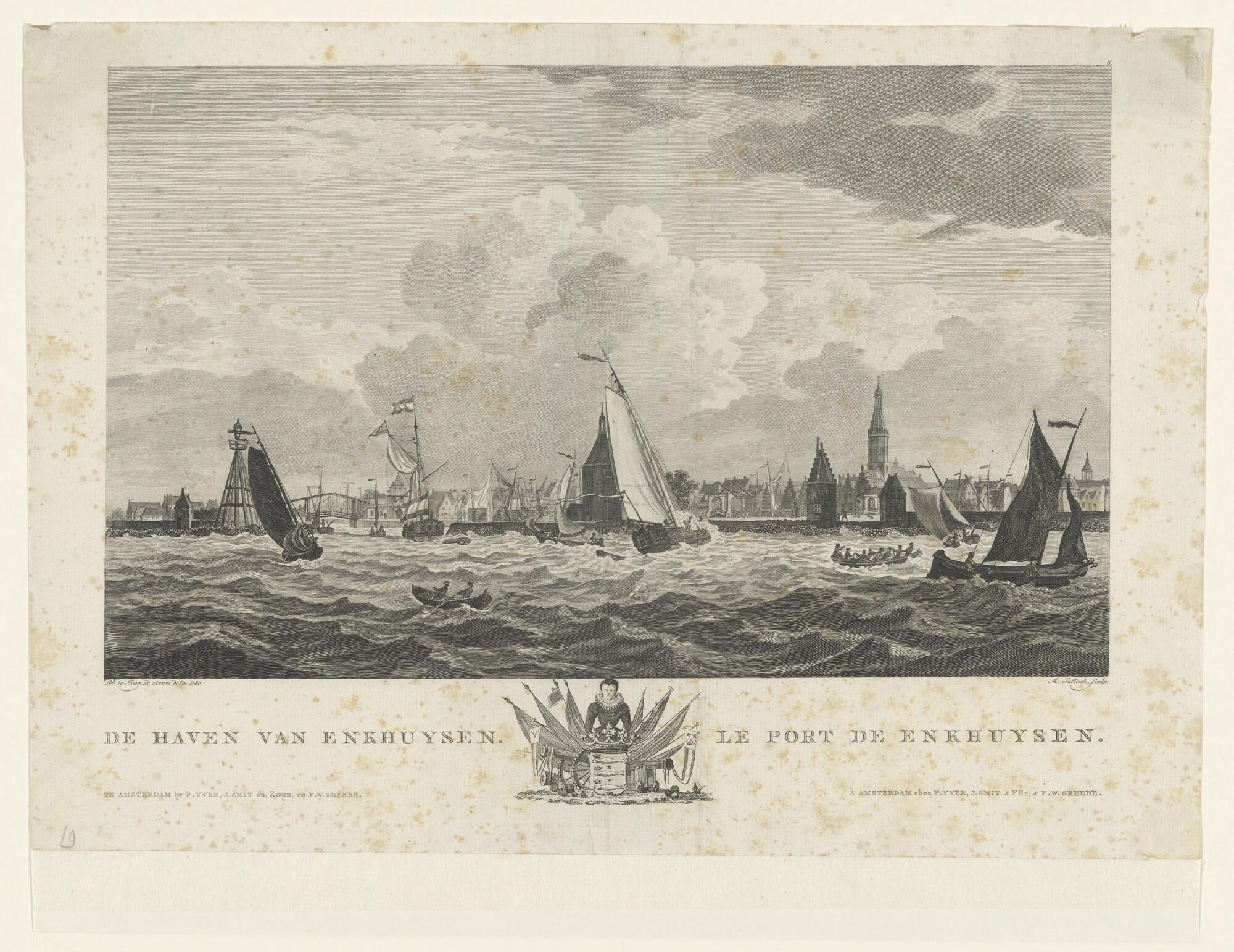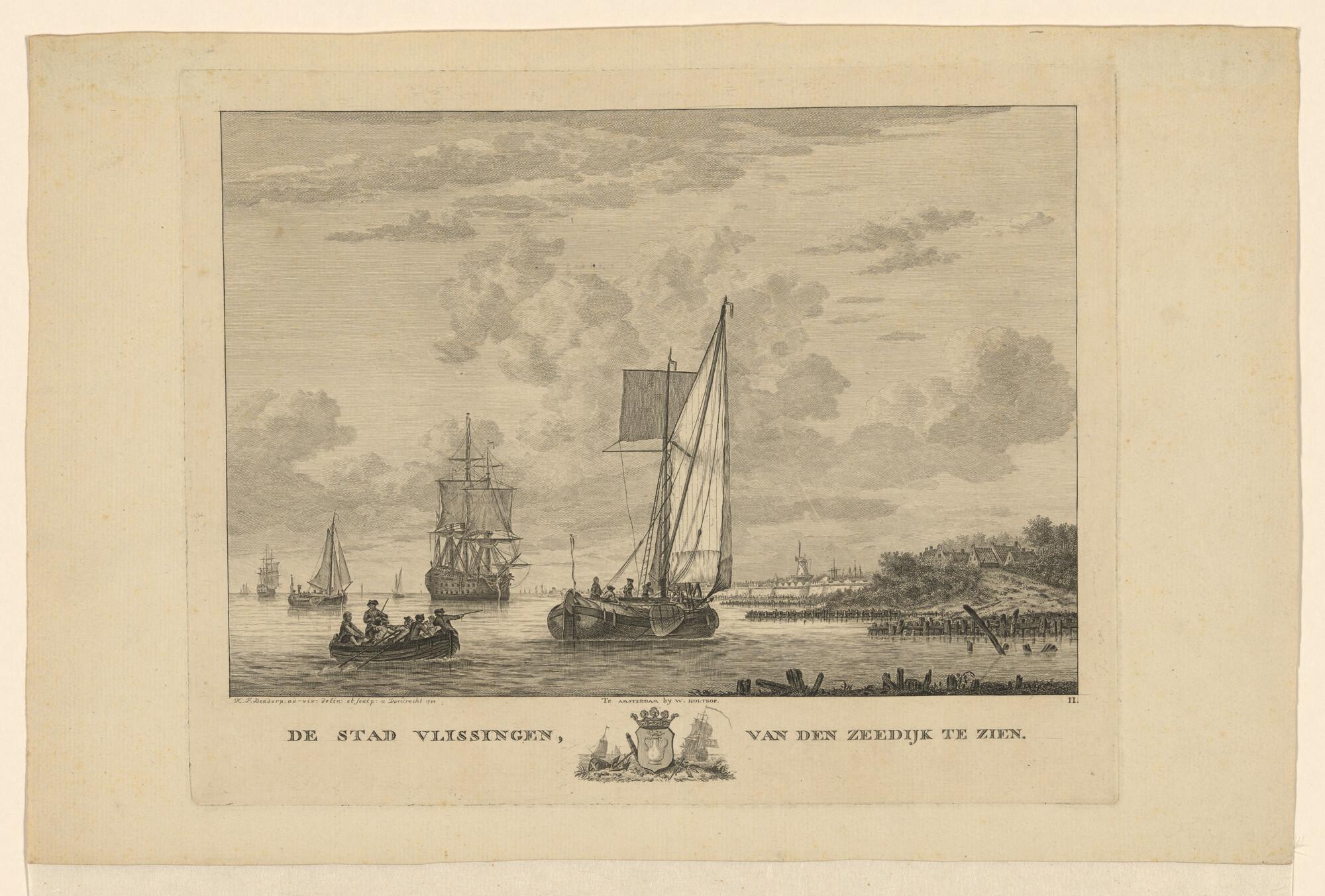 Een havengezicht, met rechts een woonhuis, waarbij e...