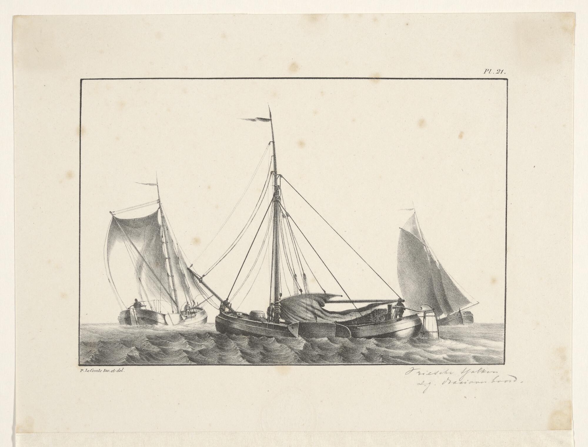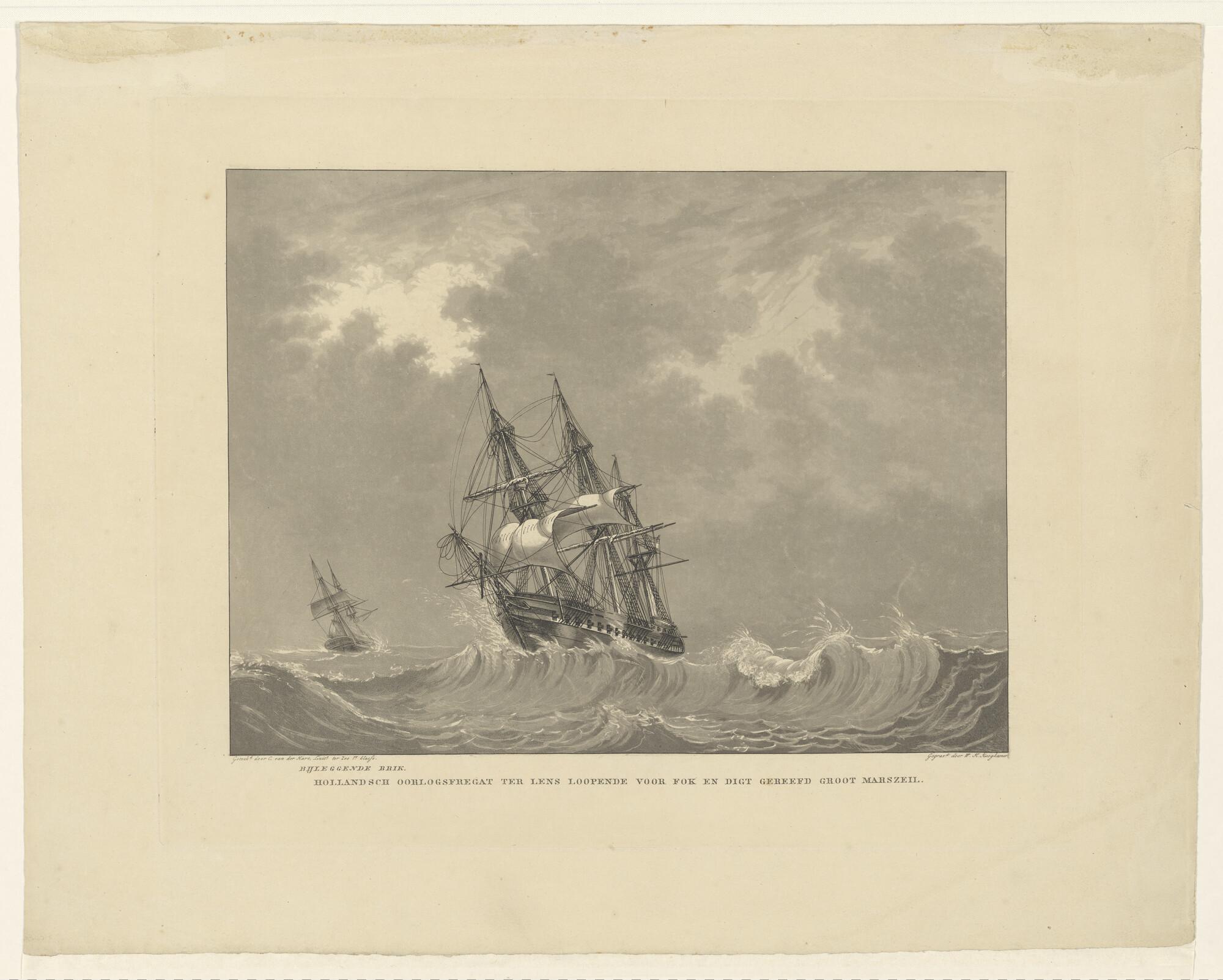 Een lenzend Nederlands oorlogsfregat in ruwe zee