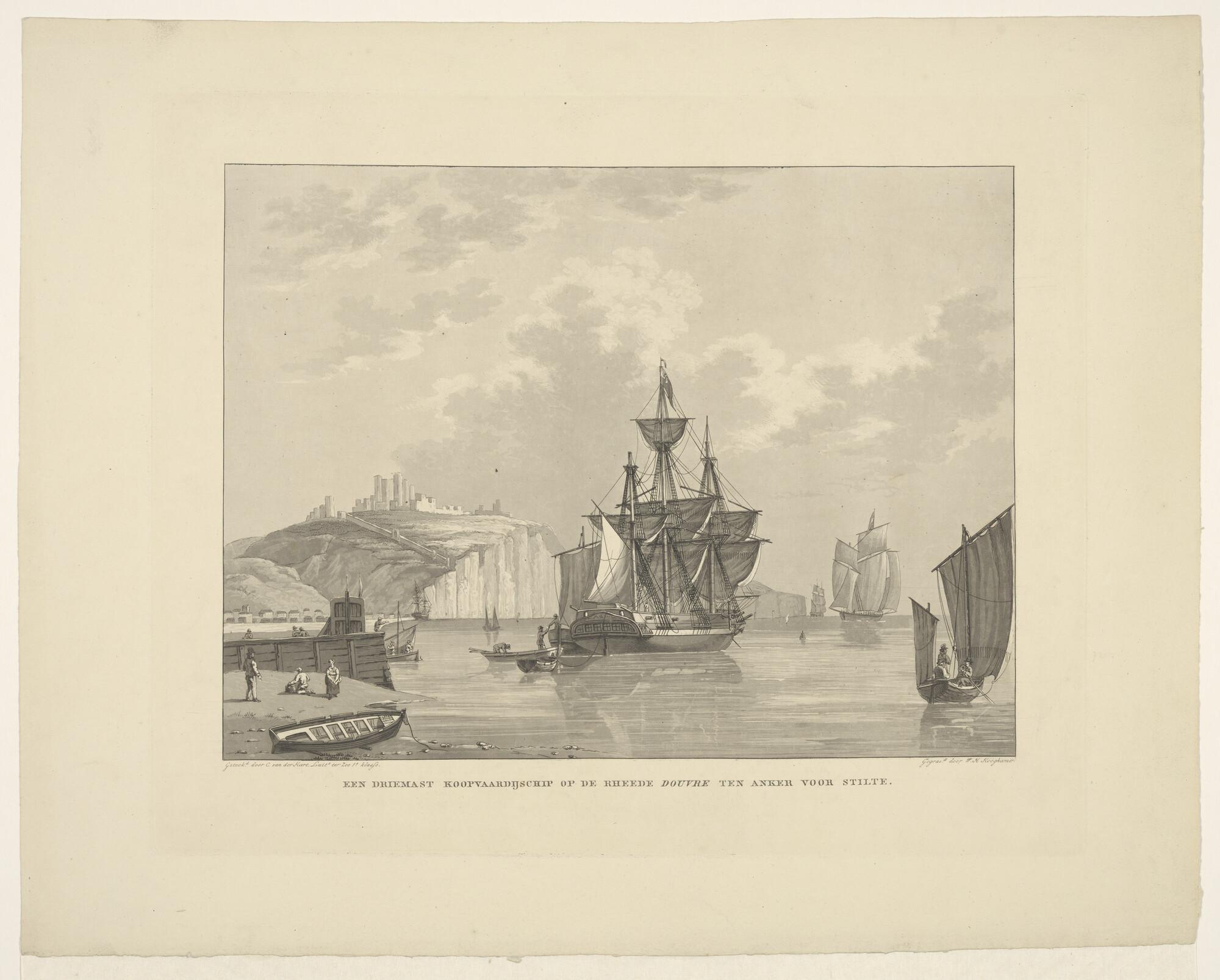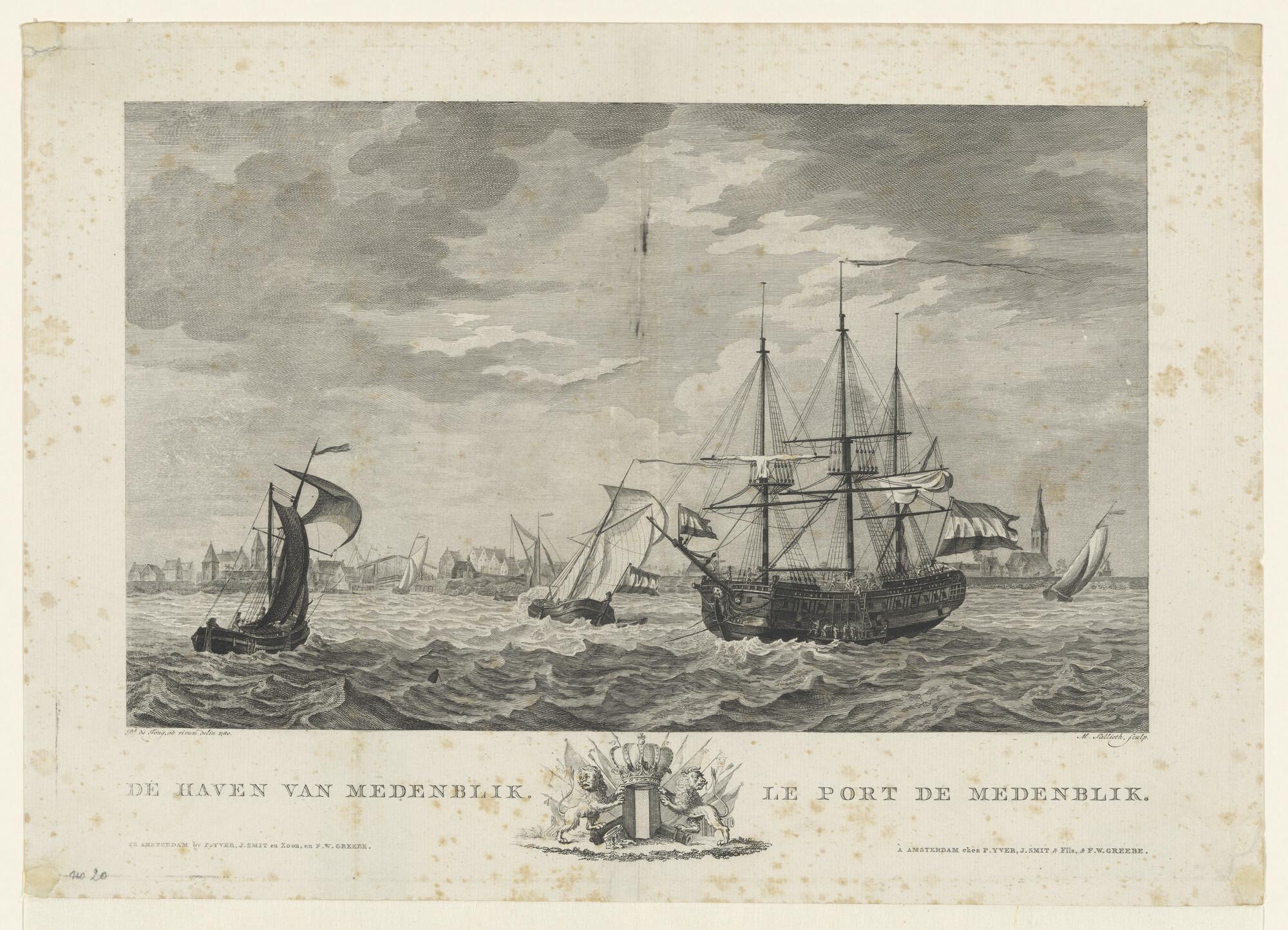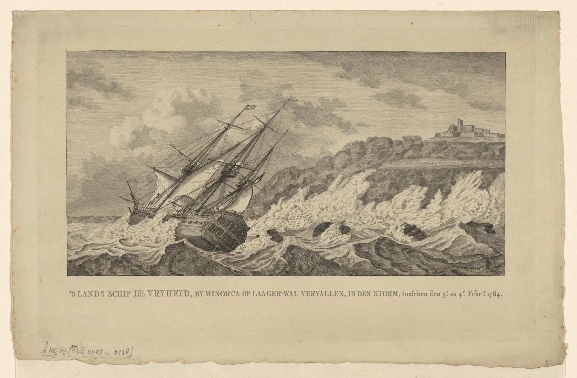 Het oorlogsschip 'Vrijheid' aan lager wal bij Minorc...