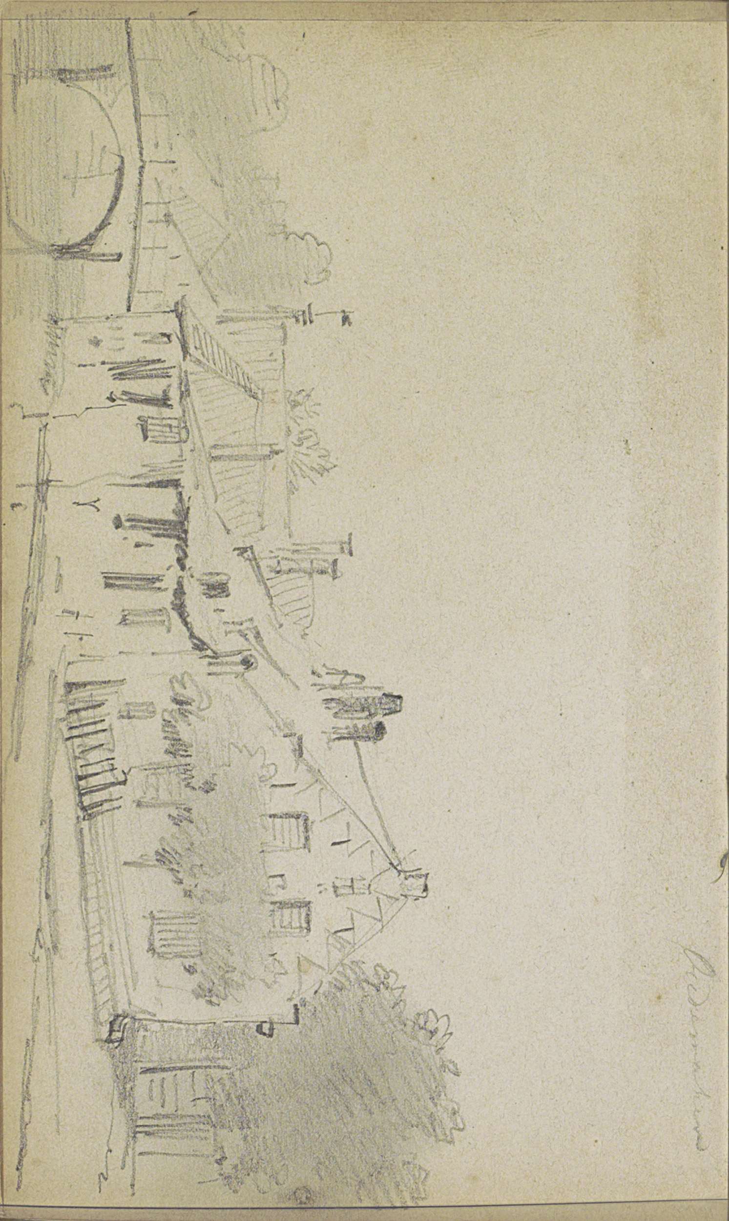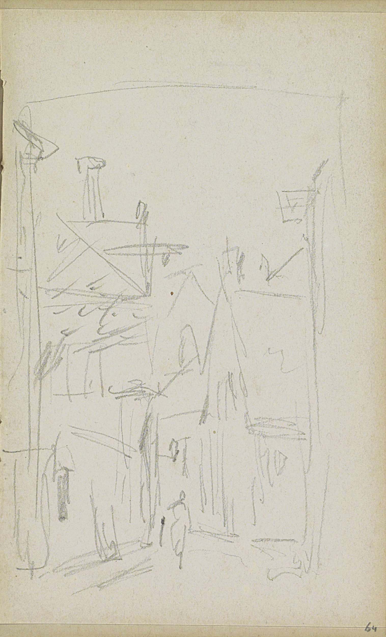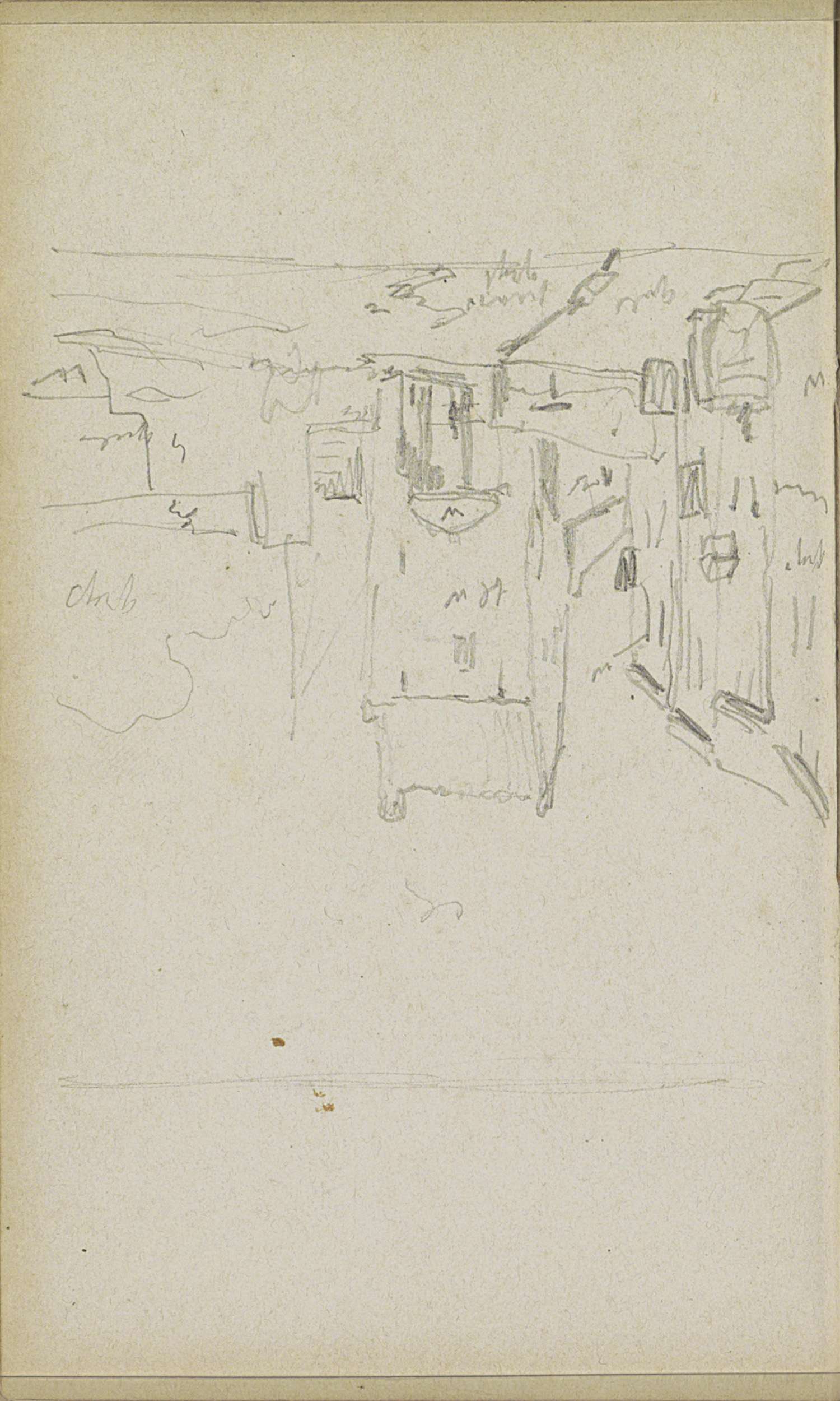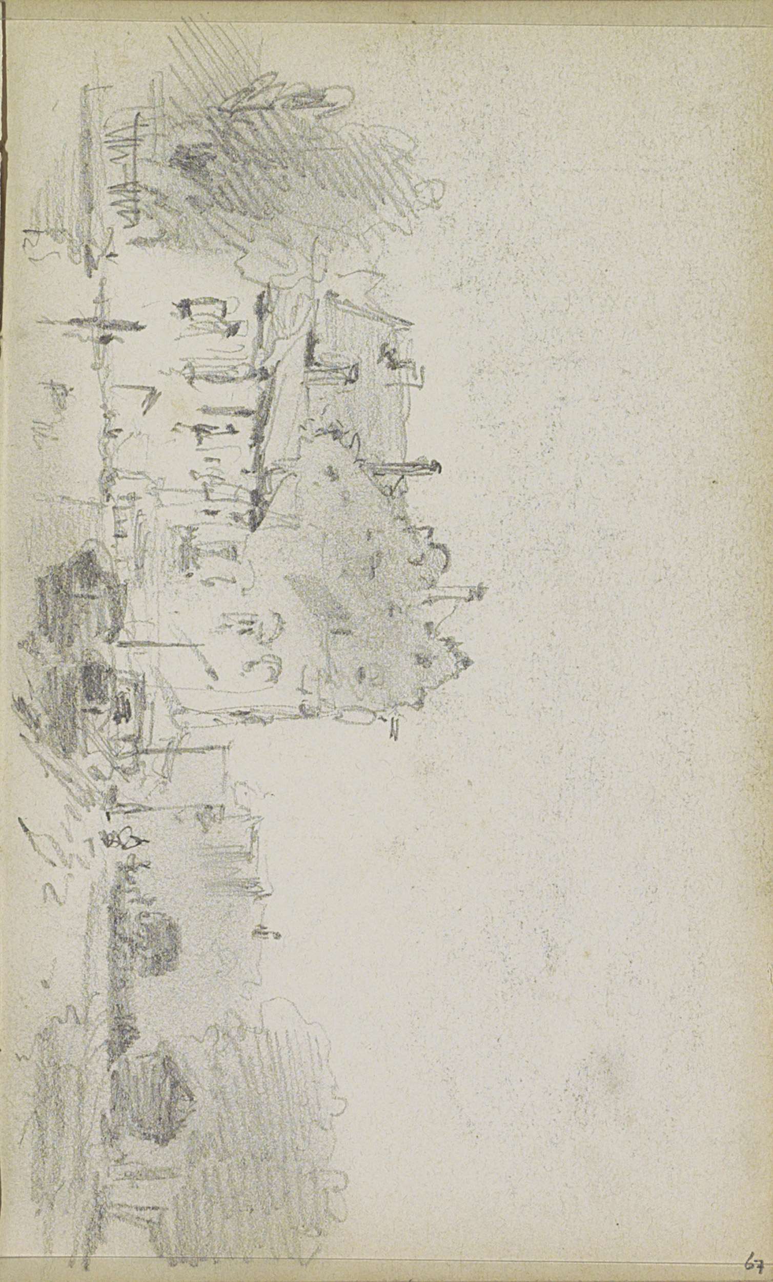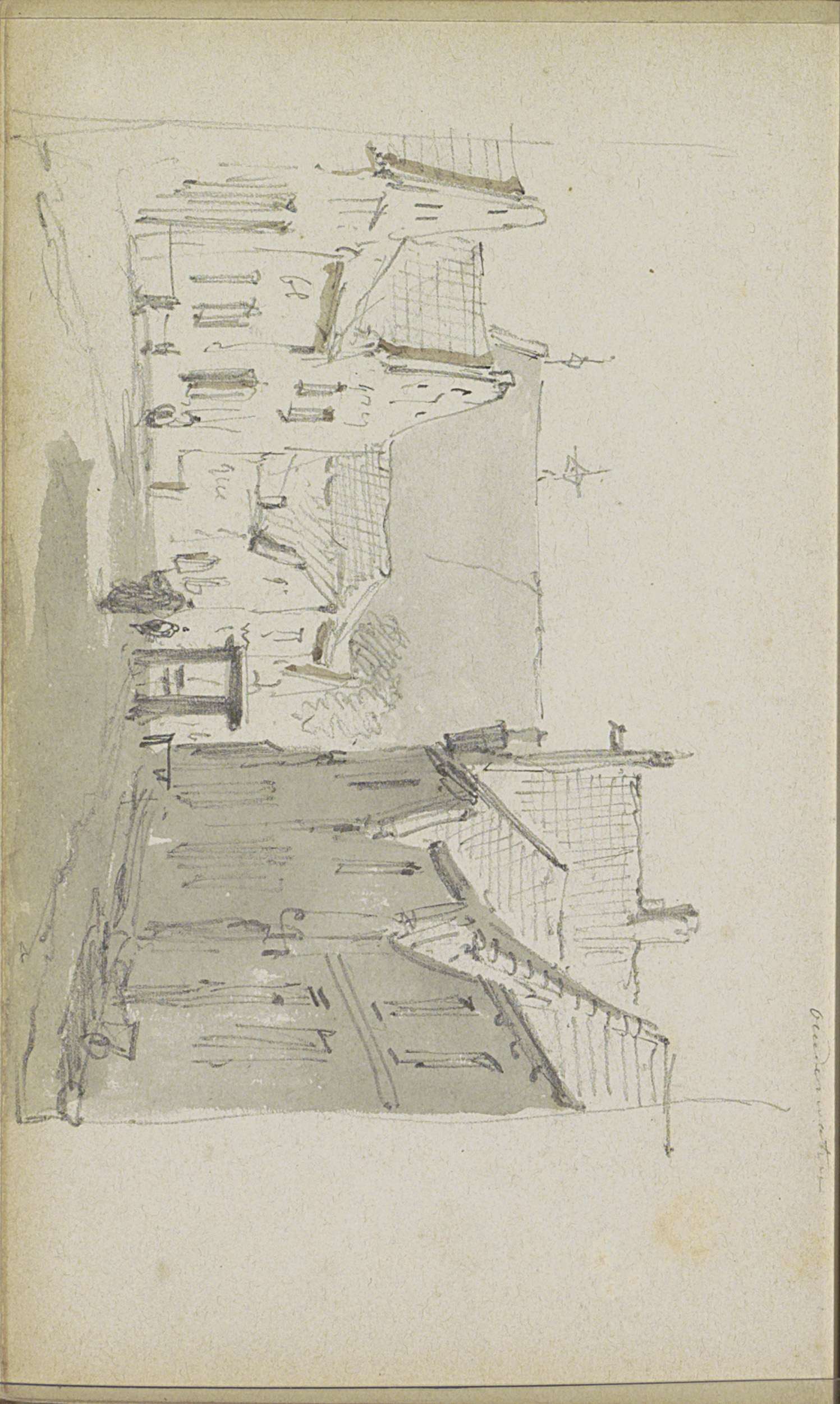 Gezicht op huizen langs een gracht, mogelijk te Oude...