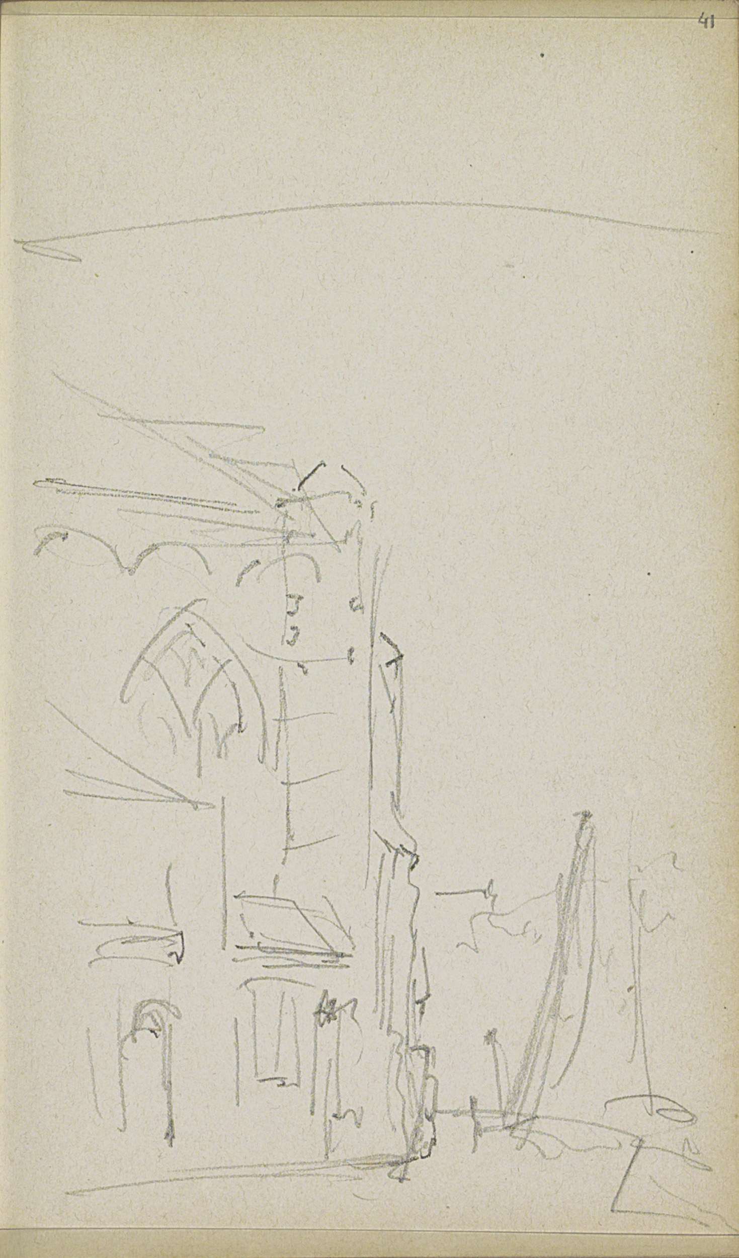 Detailstudies van de Oostpoort en de Oude Kerk te Delft