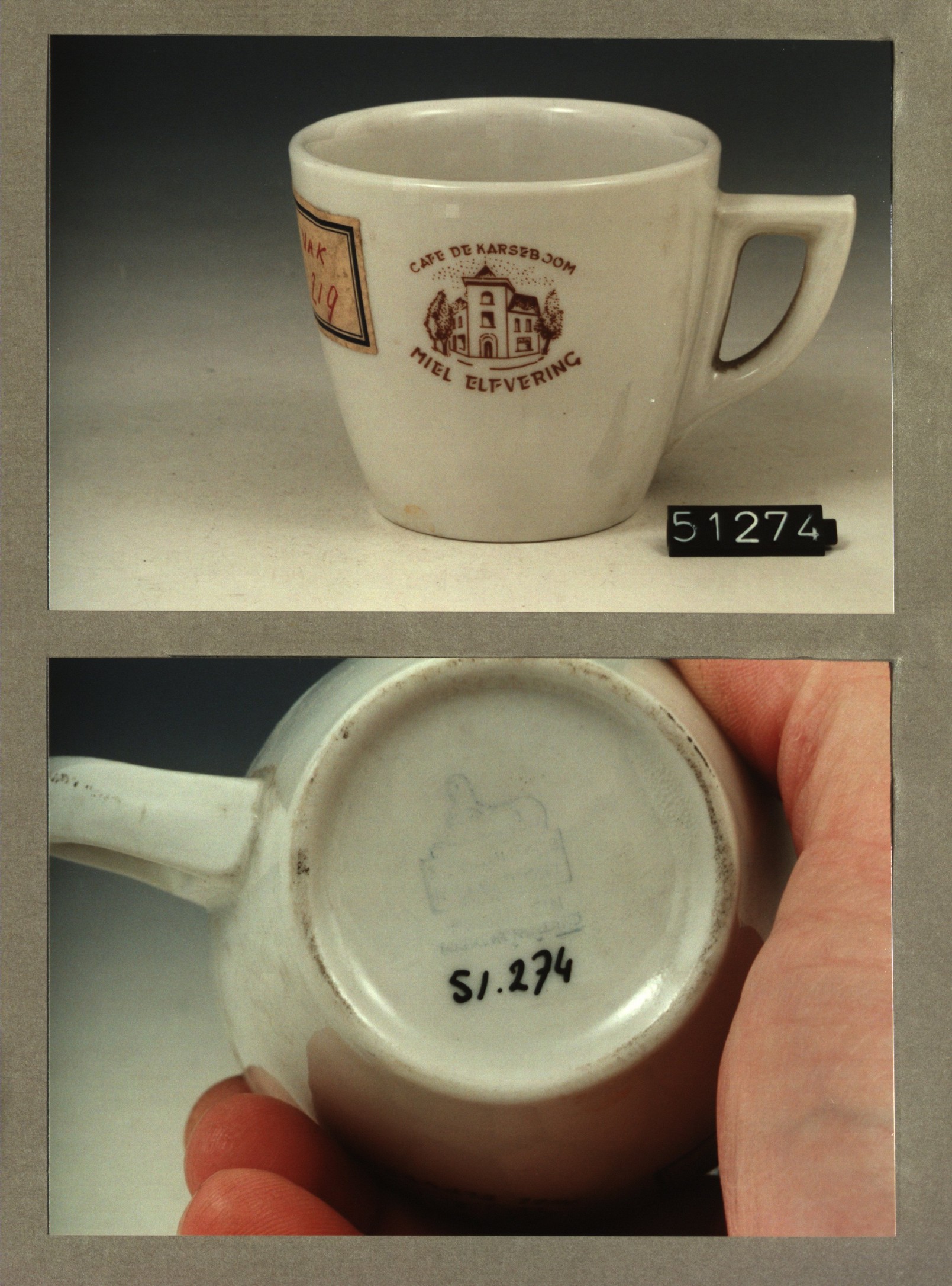 Kop met opschrift, model P2 met decor De karseboom M...