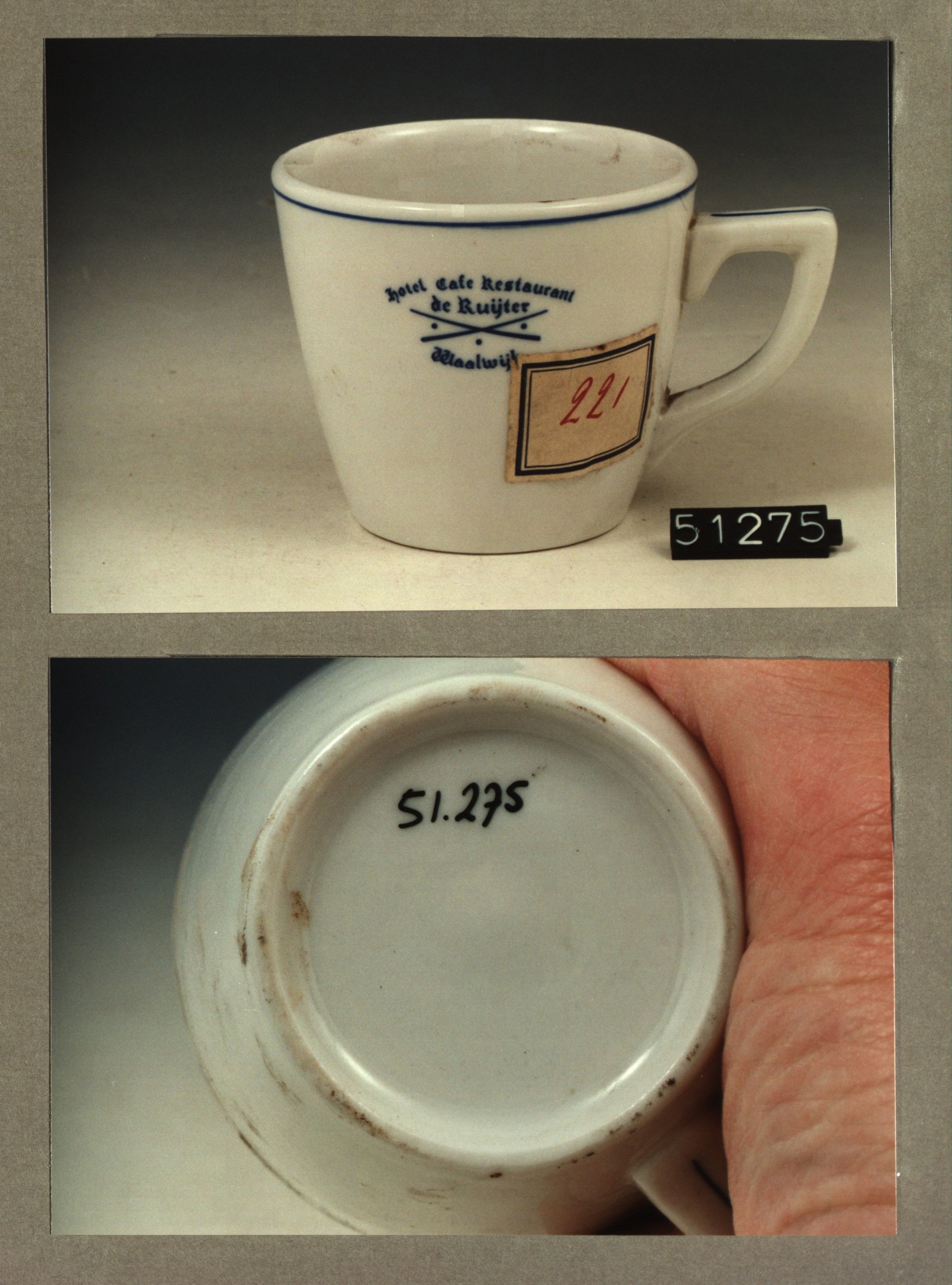 Kop met opschrift, model P met decor De Ruijter hote...