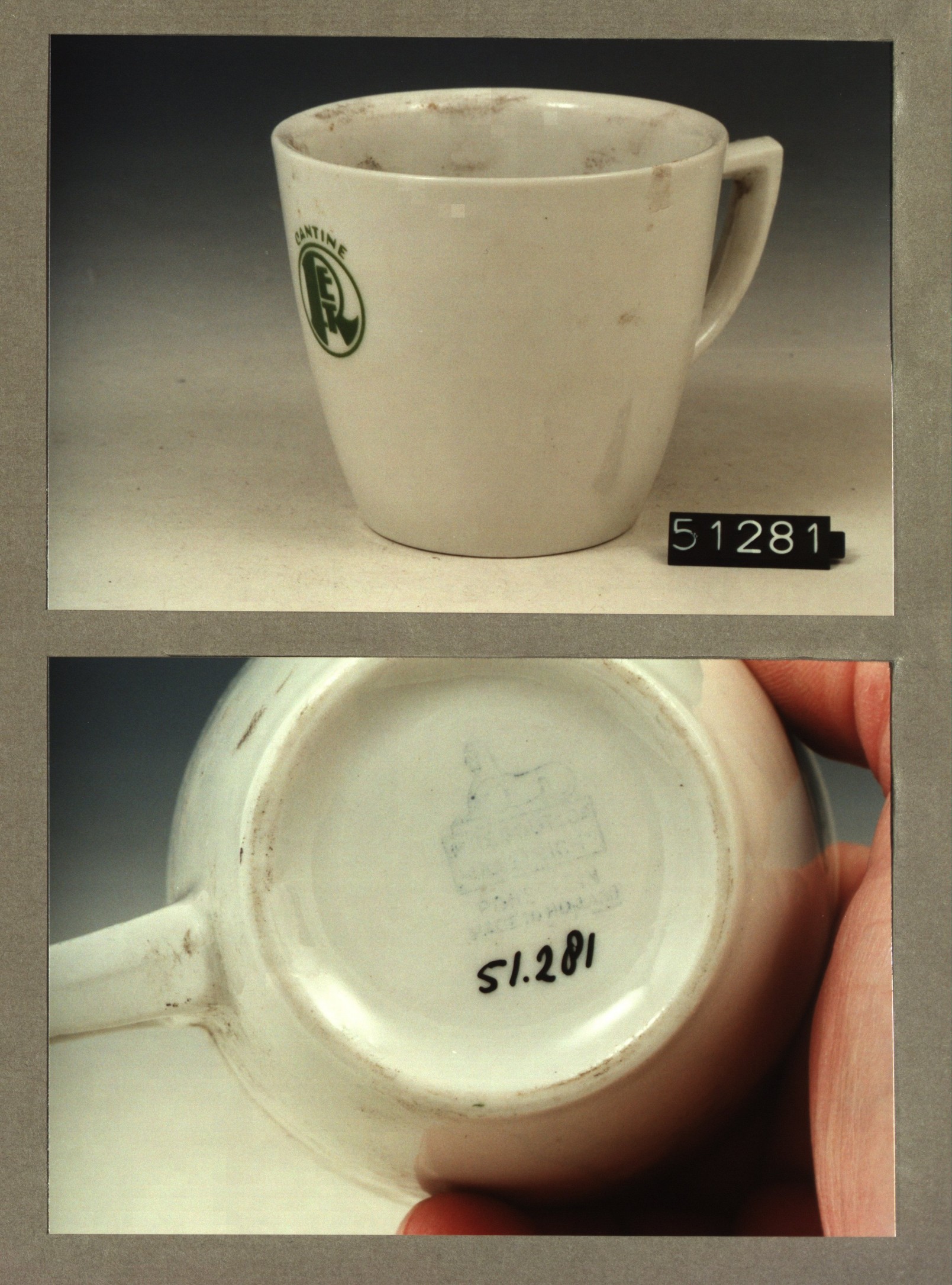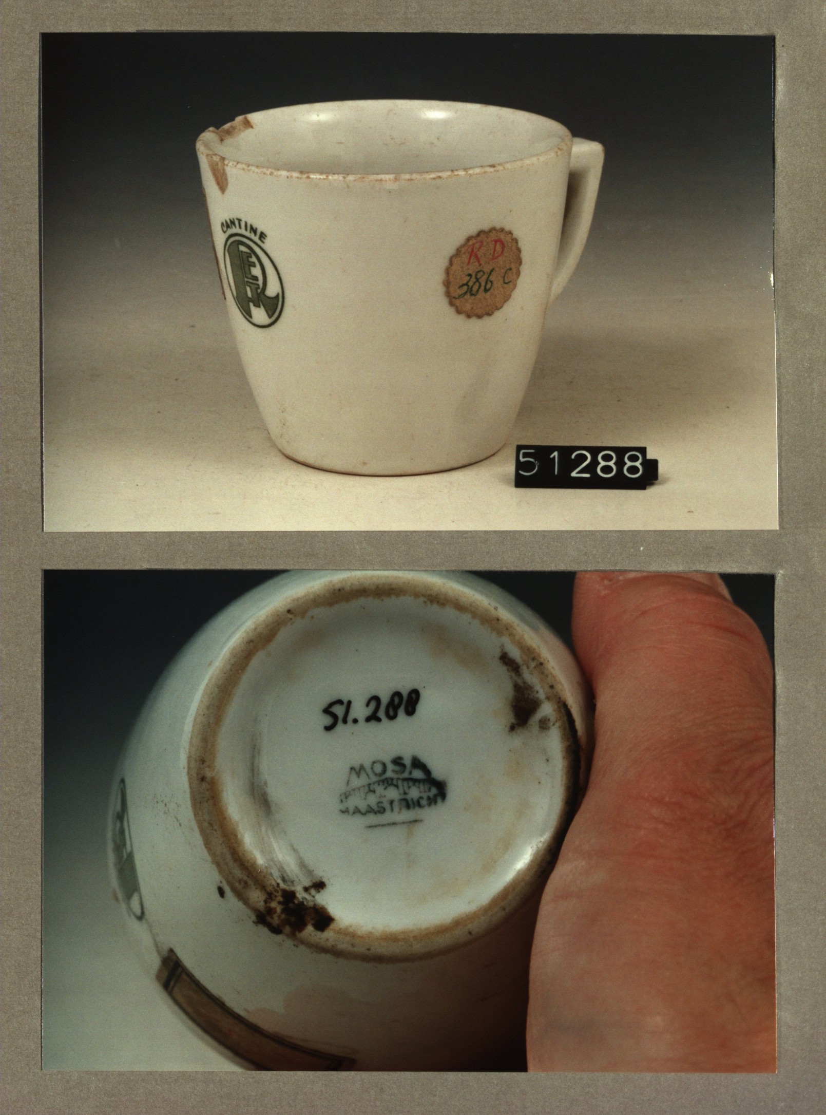 Kop met opschrift, model P2 met decor RET cantine