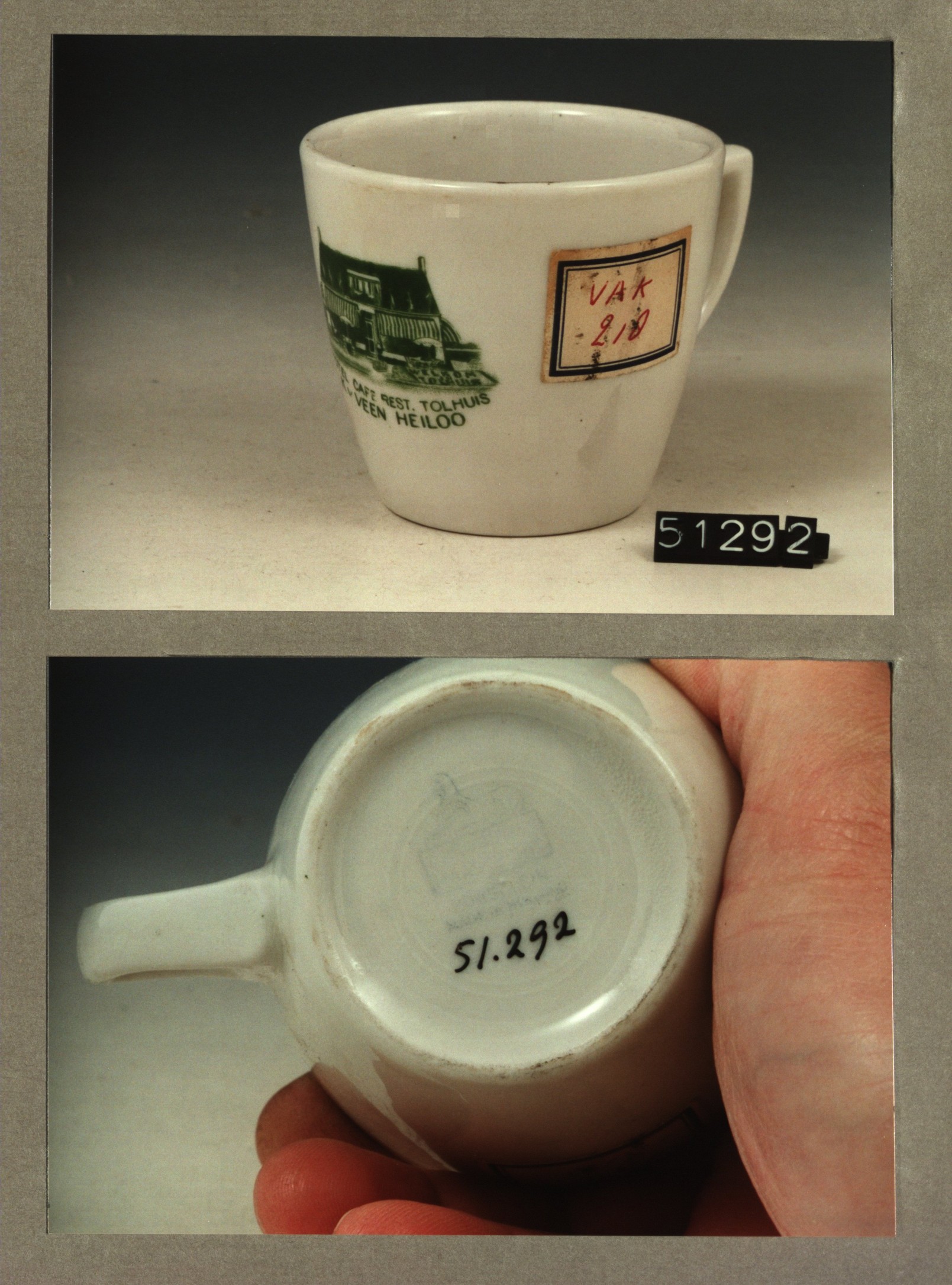 Kop met opschrift, model P met decor Restaurant Vink...
