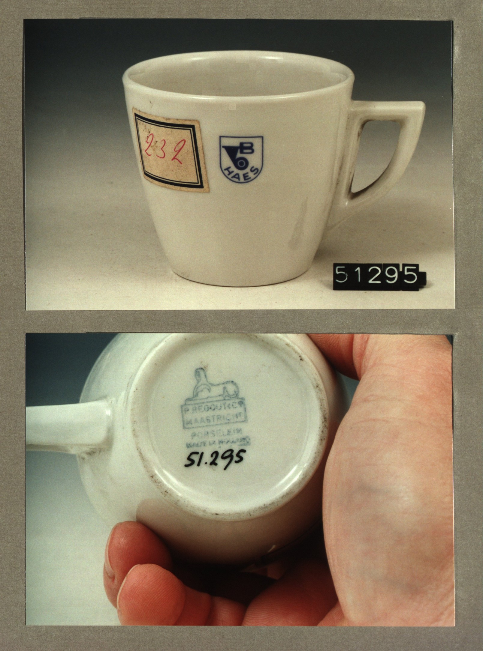 Kop met opschrift, model P met decor Haes B