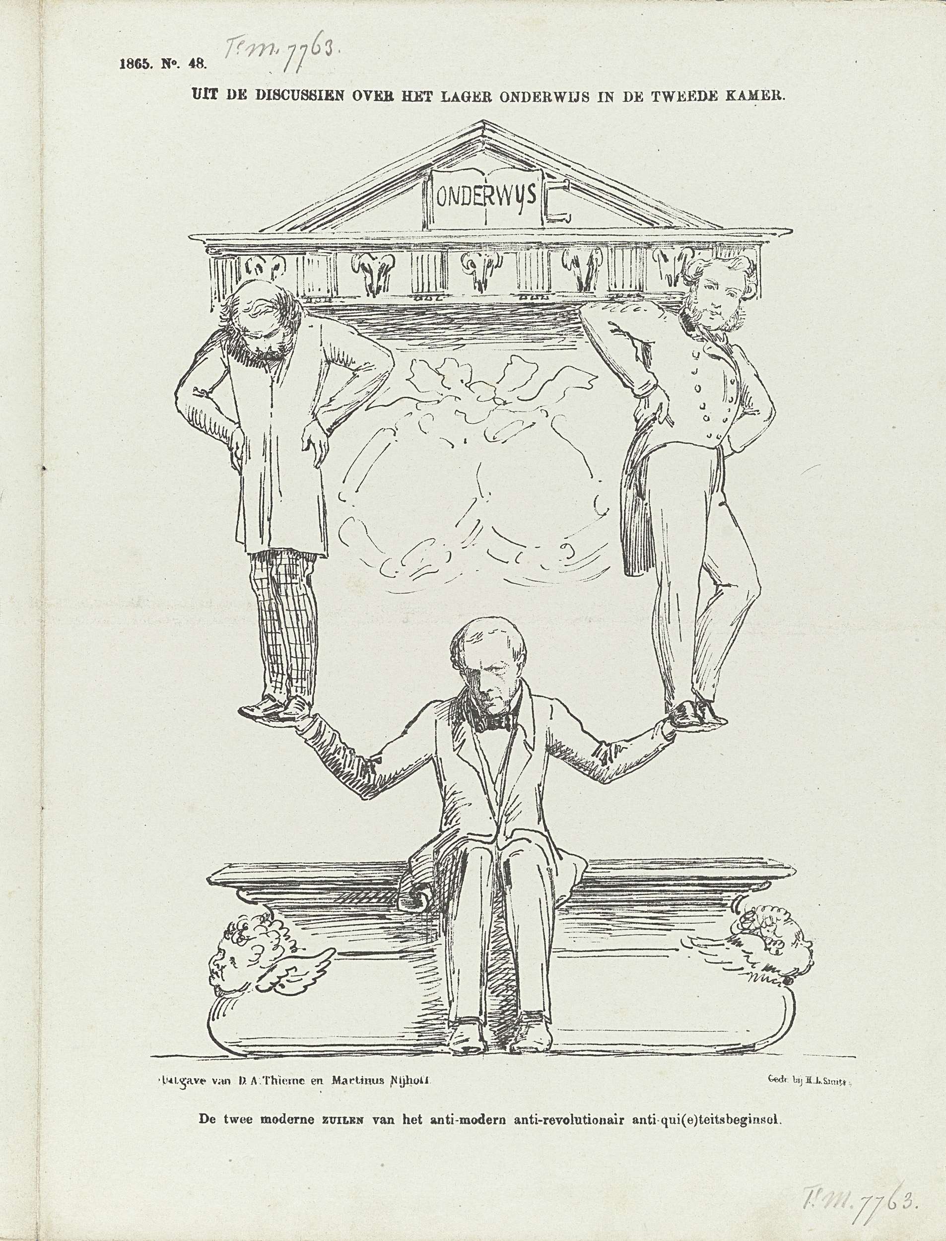 Spotprent over de discussie over het lager onderwijs...