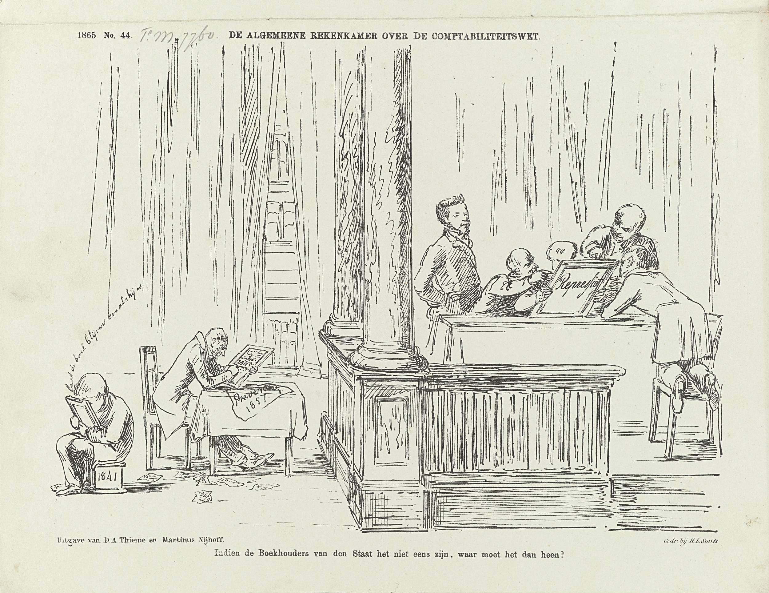 Spotprent op de Algemene Rekenkamer, 1865