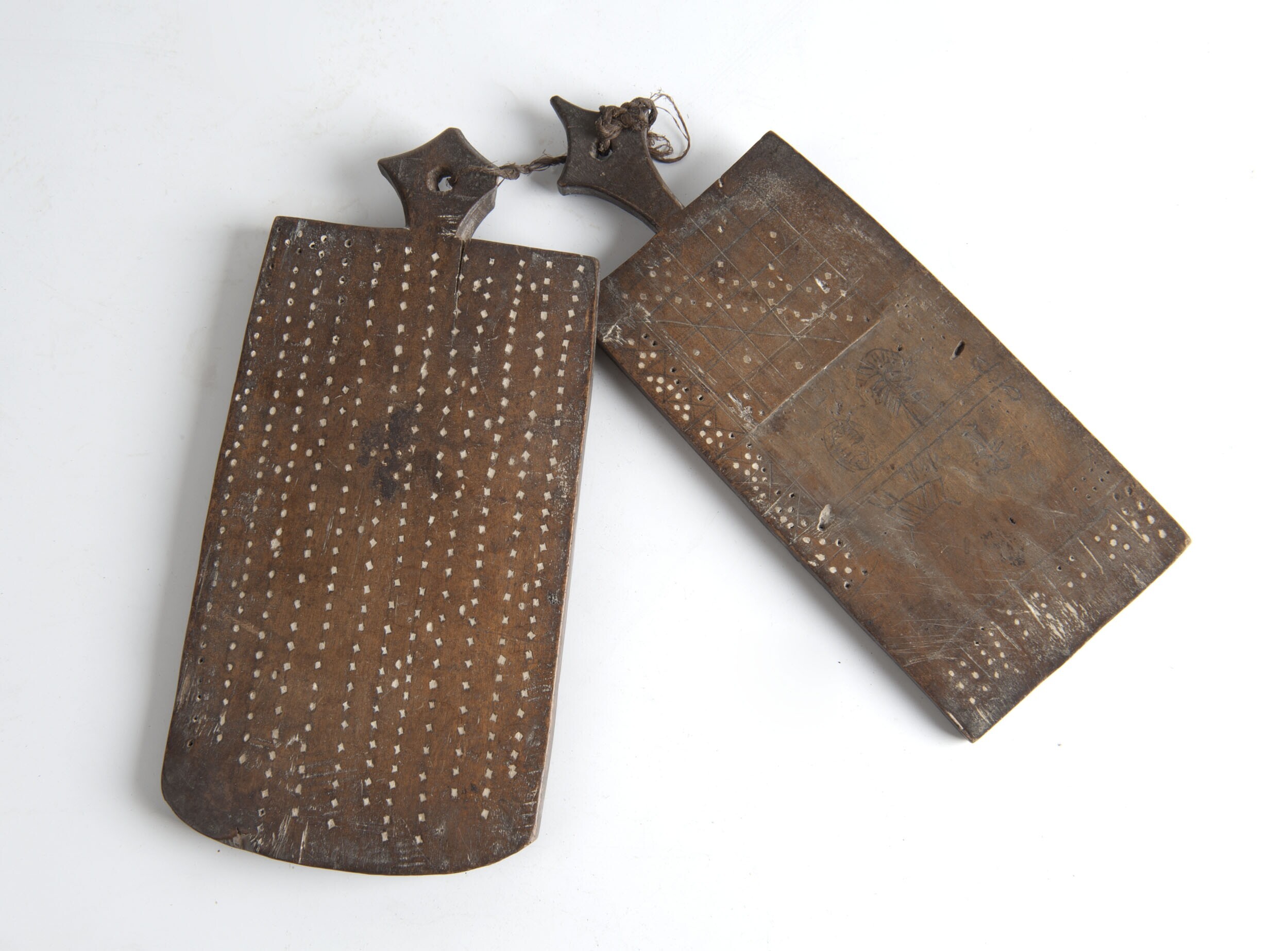 Drie stukken karton en twee vellen papier, gewikkeld...