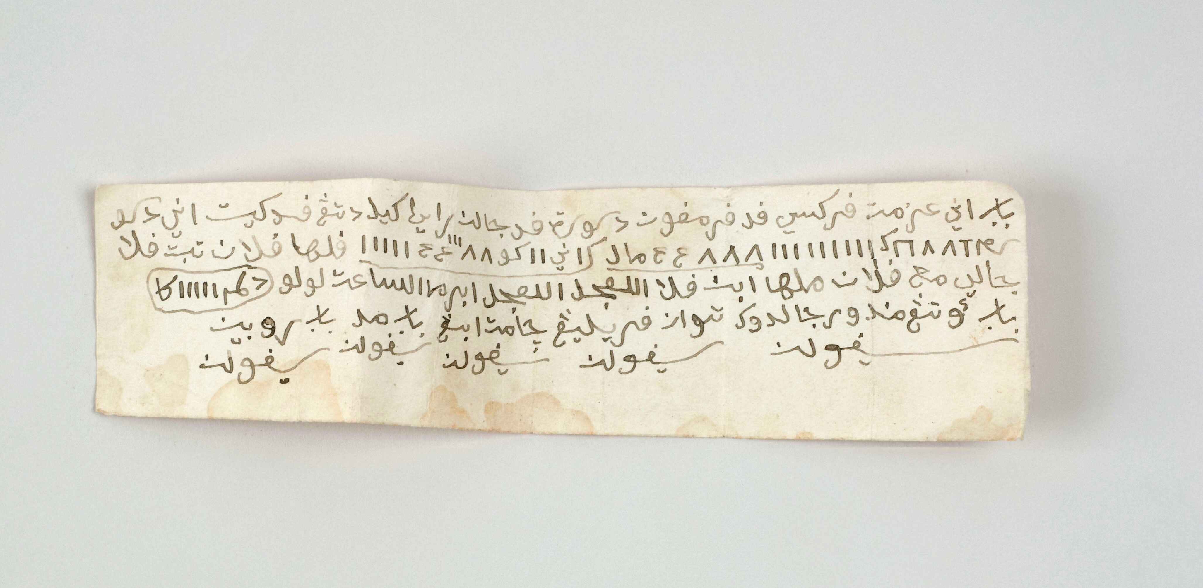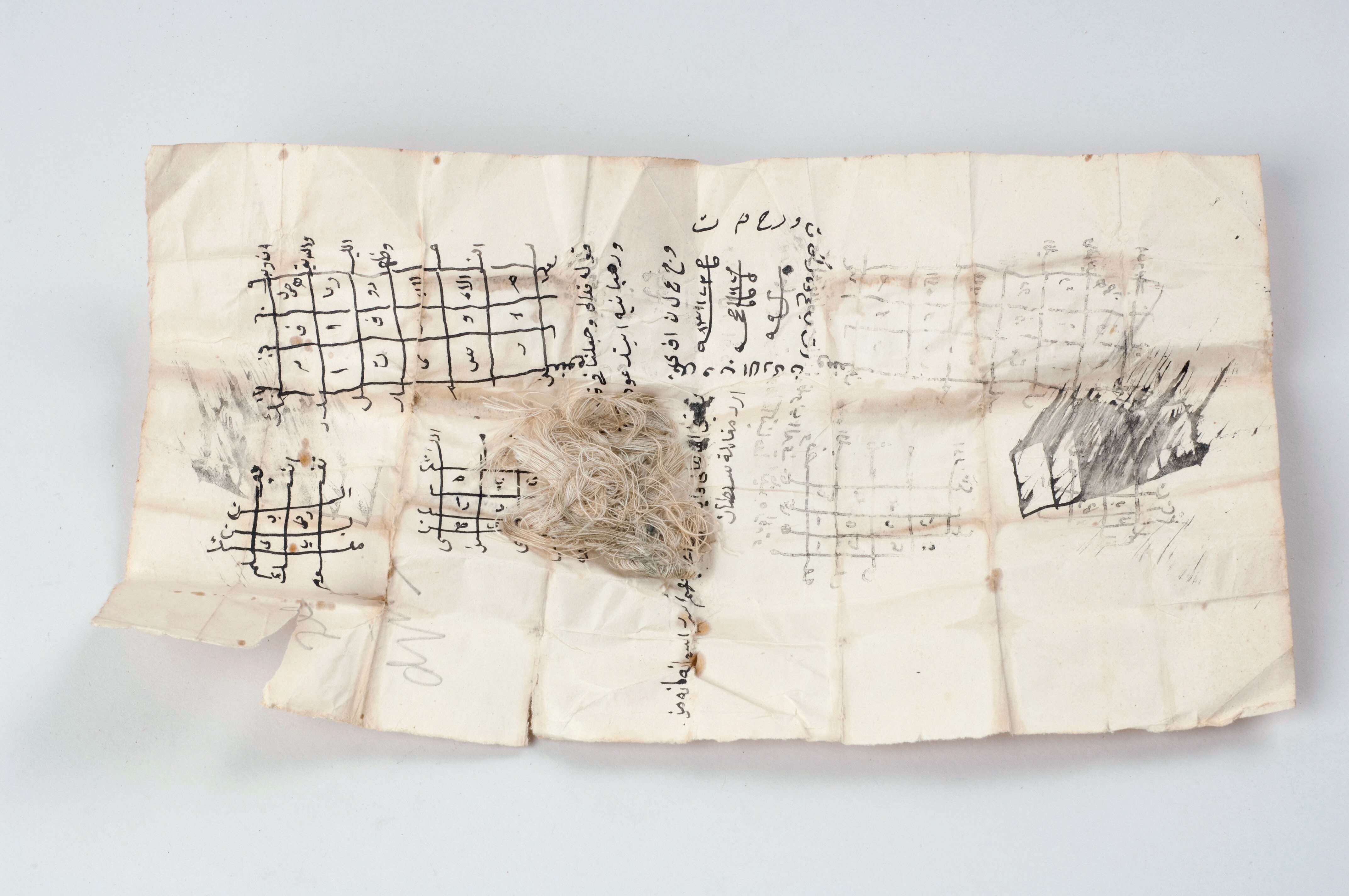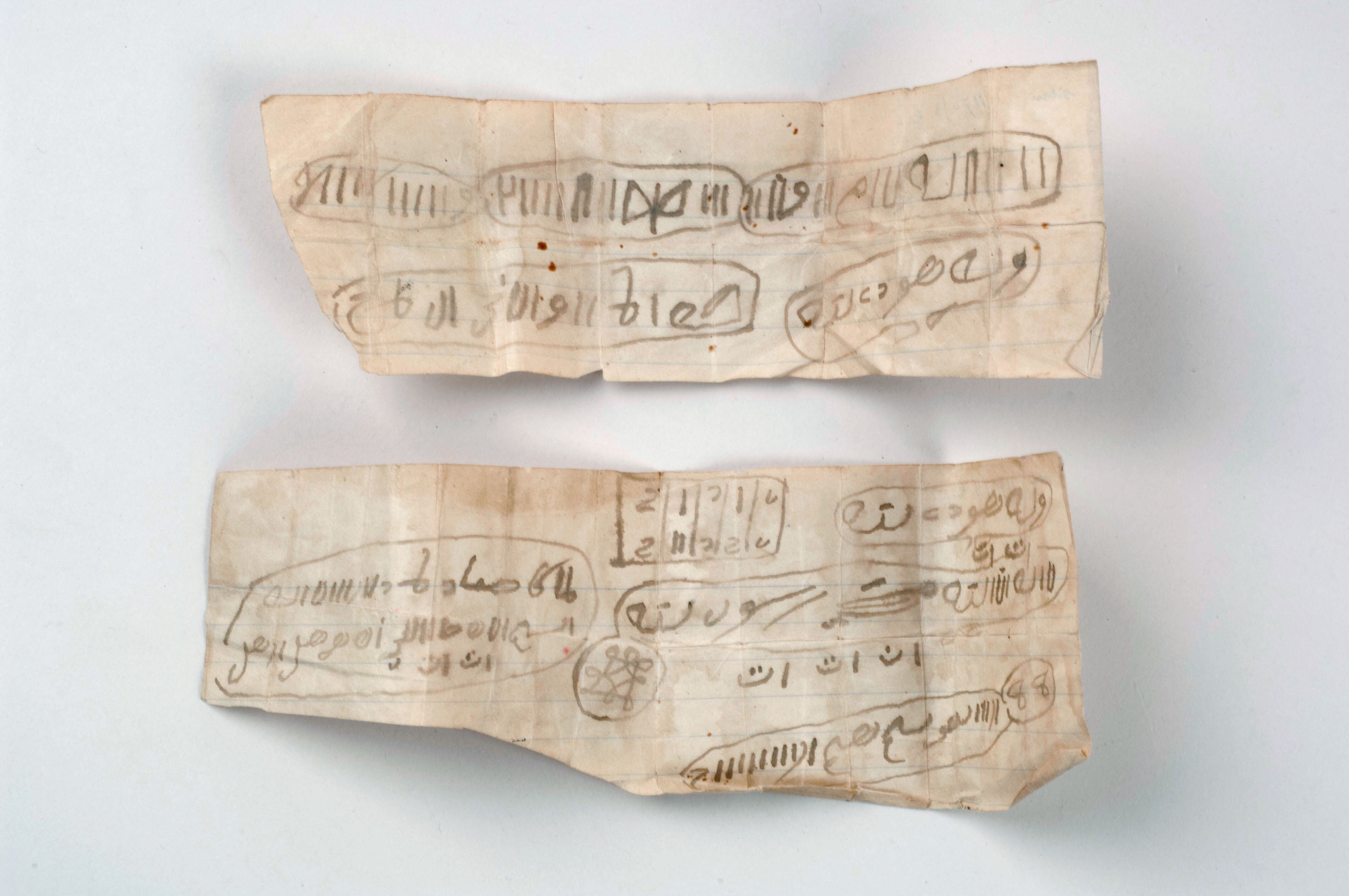 Papieren djimat gevonden in een hoofddoek van Hasan