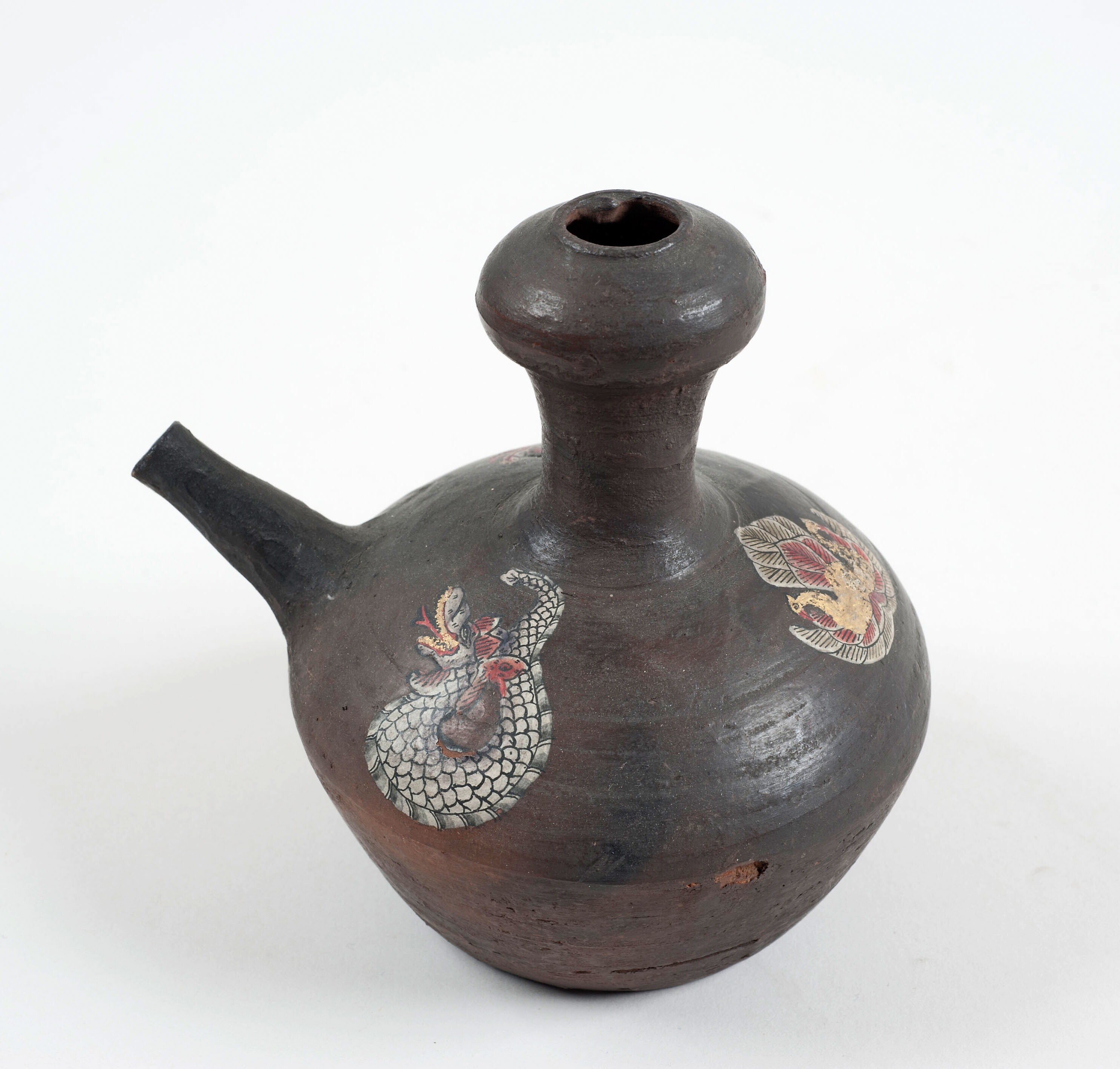 Zwart hoornen beeldje een in staatdiegewaad geklede ...