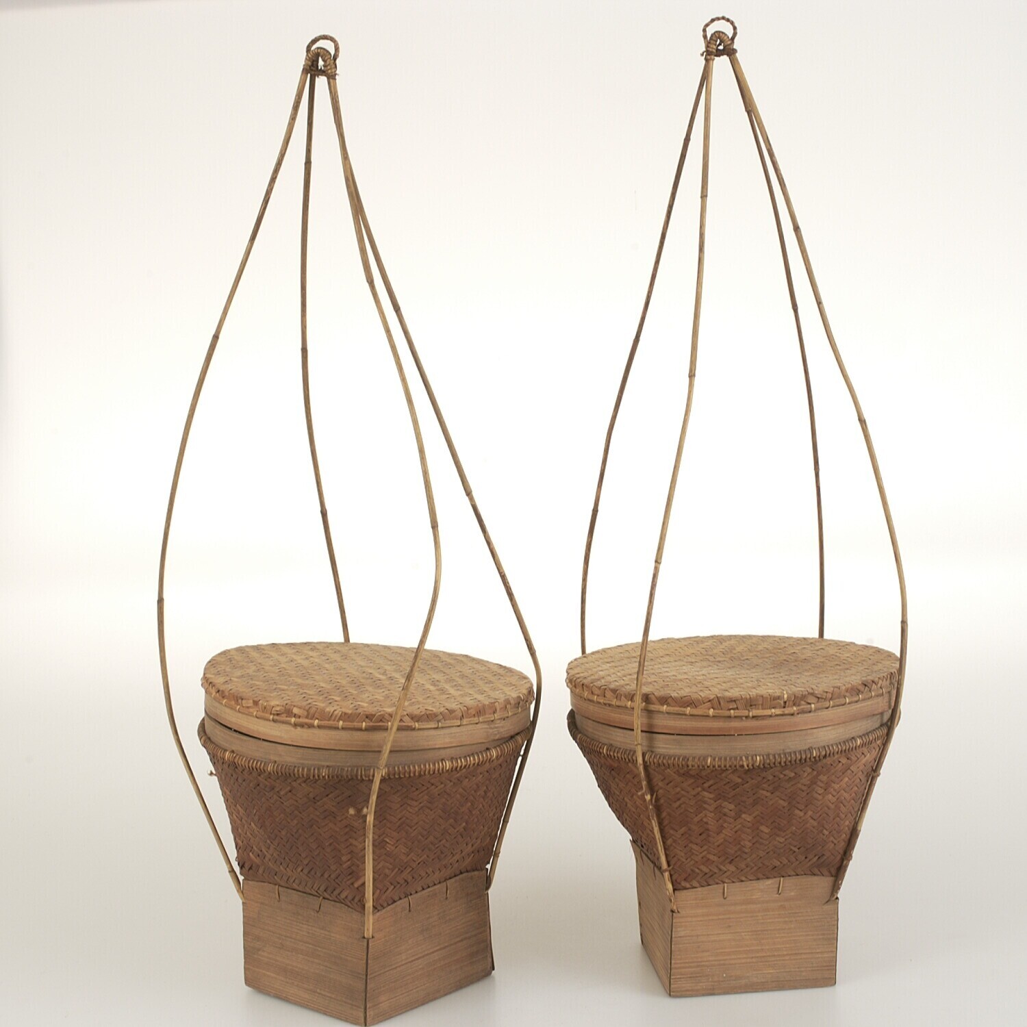Gevlochten schepmand van bamboe voor het verwijderen...