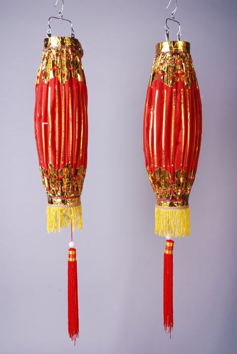 Twee spanbare rode lampen, behoren bij de viering va...