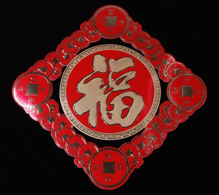 Karton met Chinees karakter en munten, behoort bij d...
