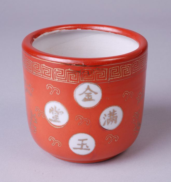 Porseleinen pot, uitwendig geglazuurd, medaillons me...