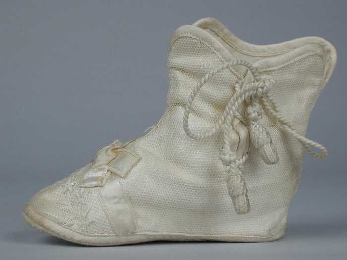 Babylaarsjes van wit zijde met tule overtrokken, bor...