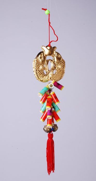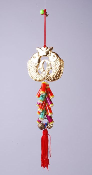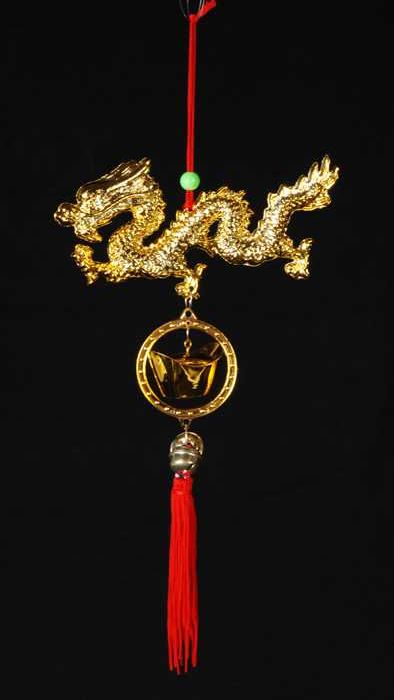 Draak, goudstaaf en bellen, attribuut bij de viering...