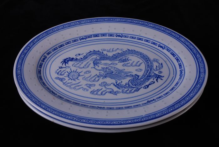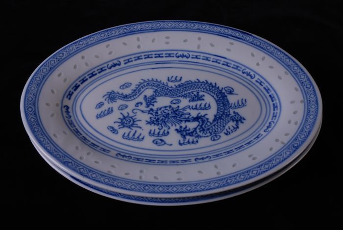Chinees porseleinen schalen, ovaal, draak in de spiegel
