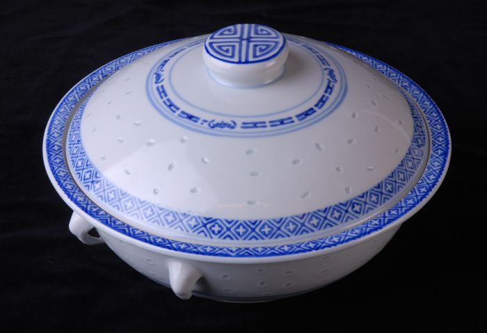 Chinese, porseleinen terrine met deksel, vier klauwe...