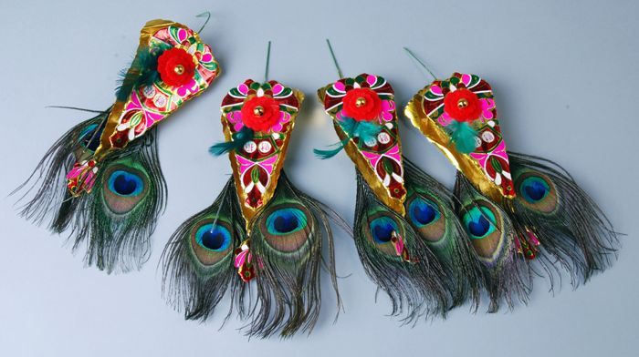 Vier versierselen met pauwenveren voor het Chinese N...