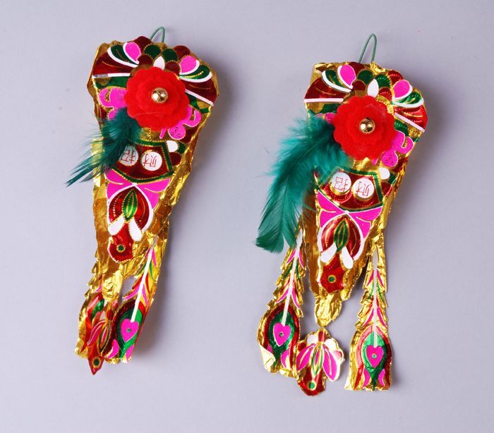 Twee versierselen met groene veer voor het Chinese N...