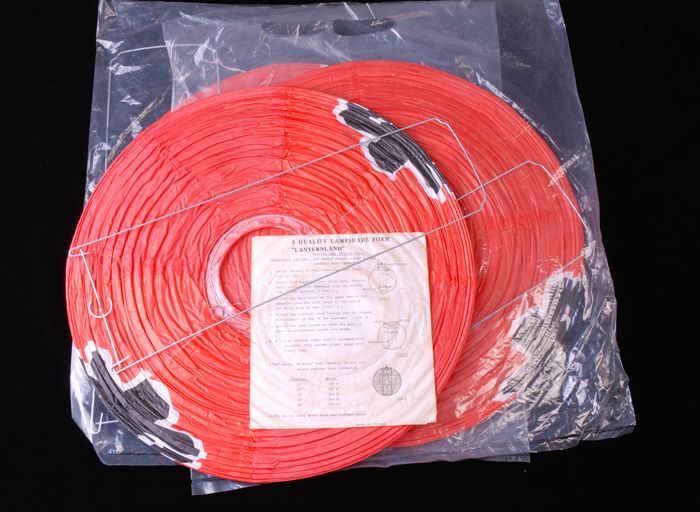 Drie opvouwbare rode lampen, behoren bij de viering ...
