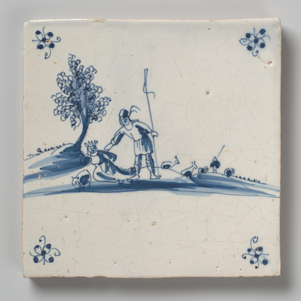 tegel van aardewerk met tinglazuur, voorstellende: k...