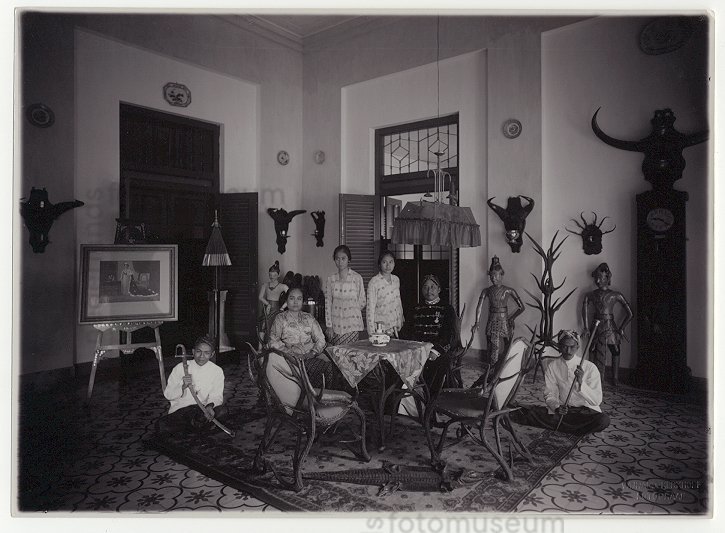 Regentenfamilie in de woonkamer van hun paleis, Java...