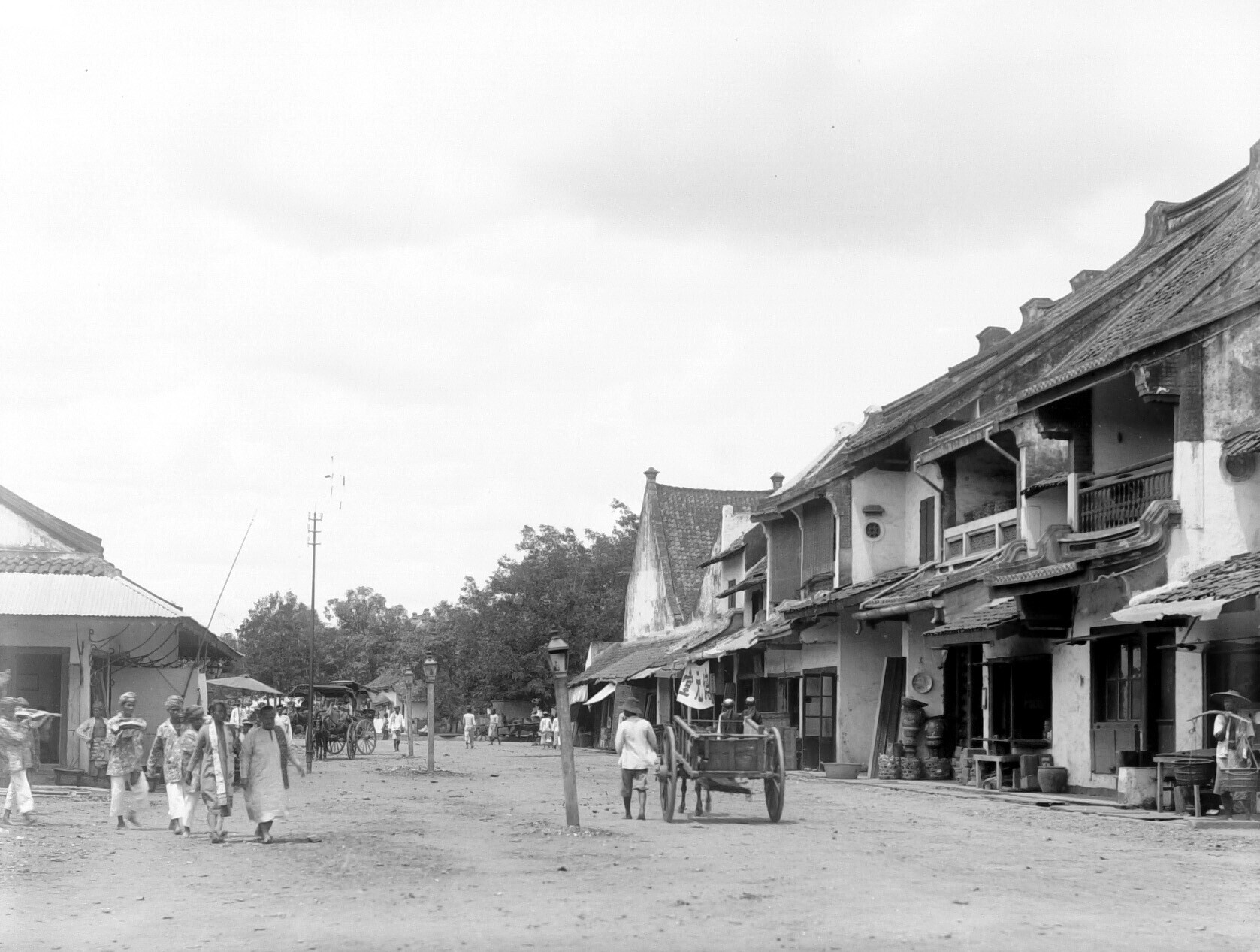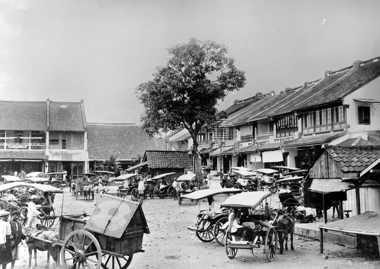 Rijtuigen en karren in de Chinese wijk van Batavia