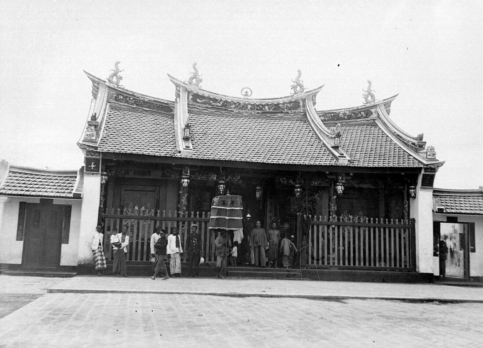 Straatgezicht bij een Chinese tempel in Soerabaja