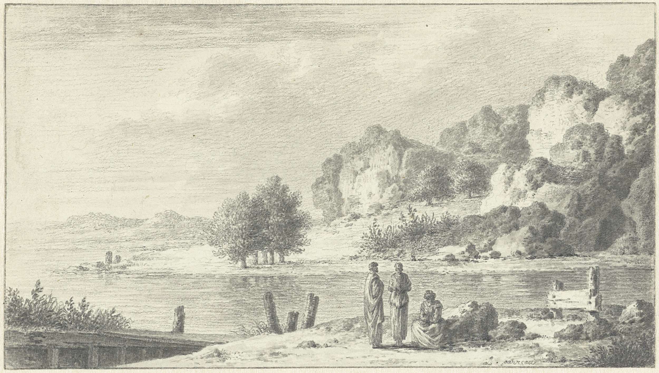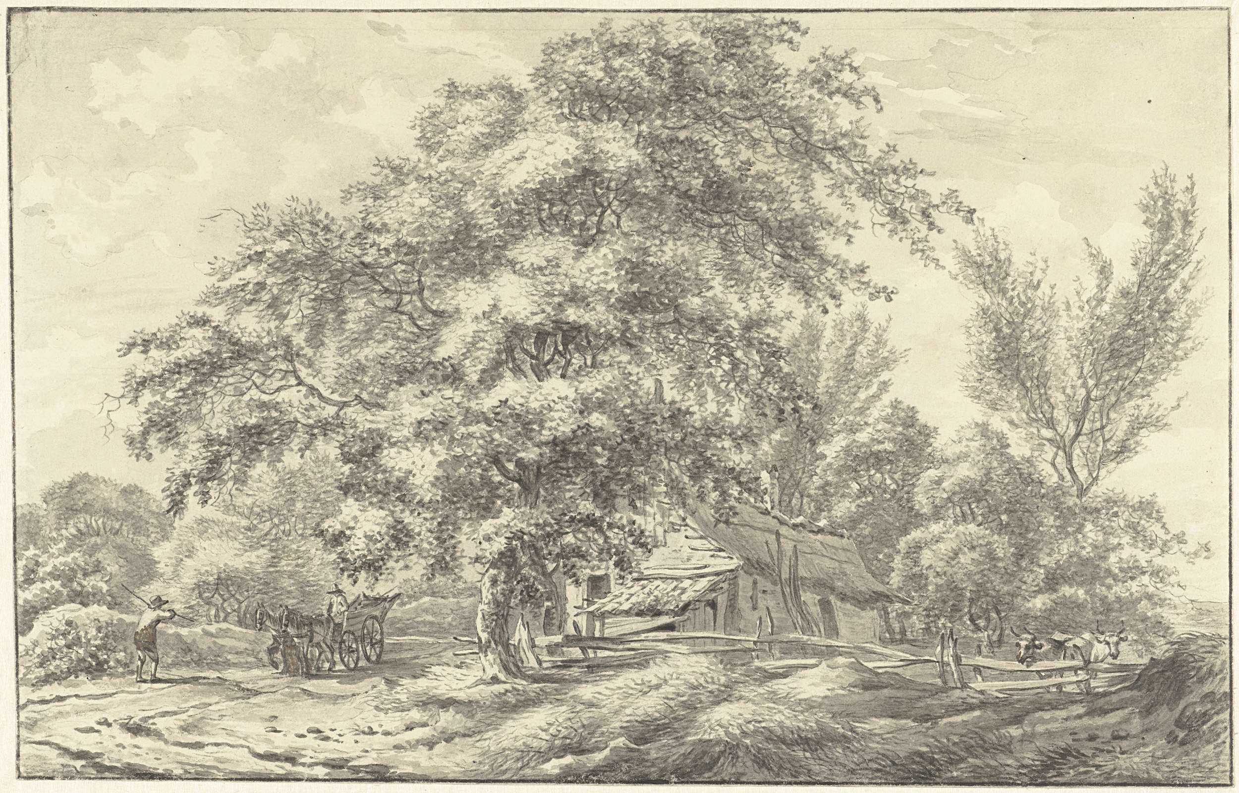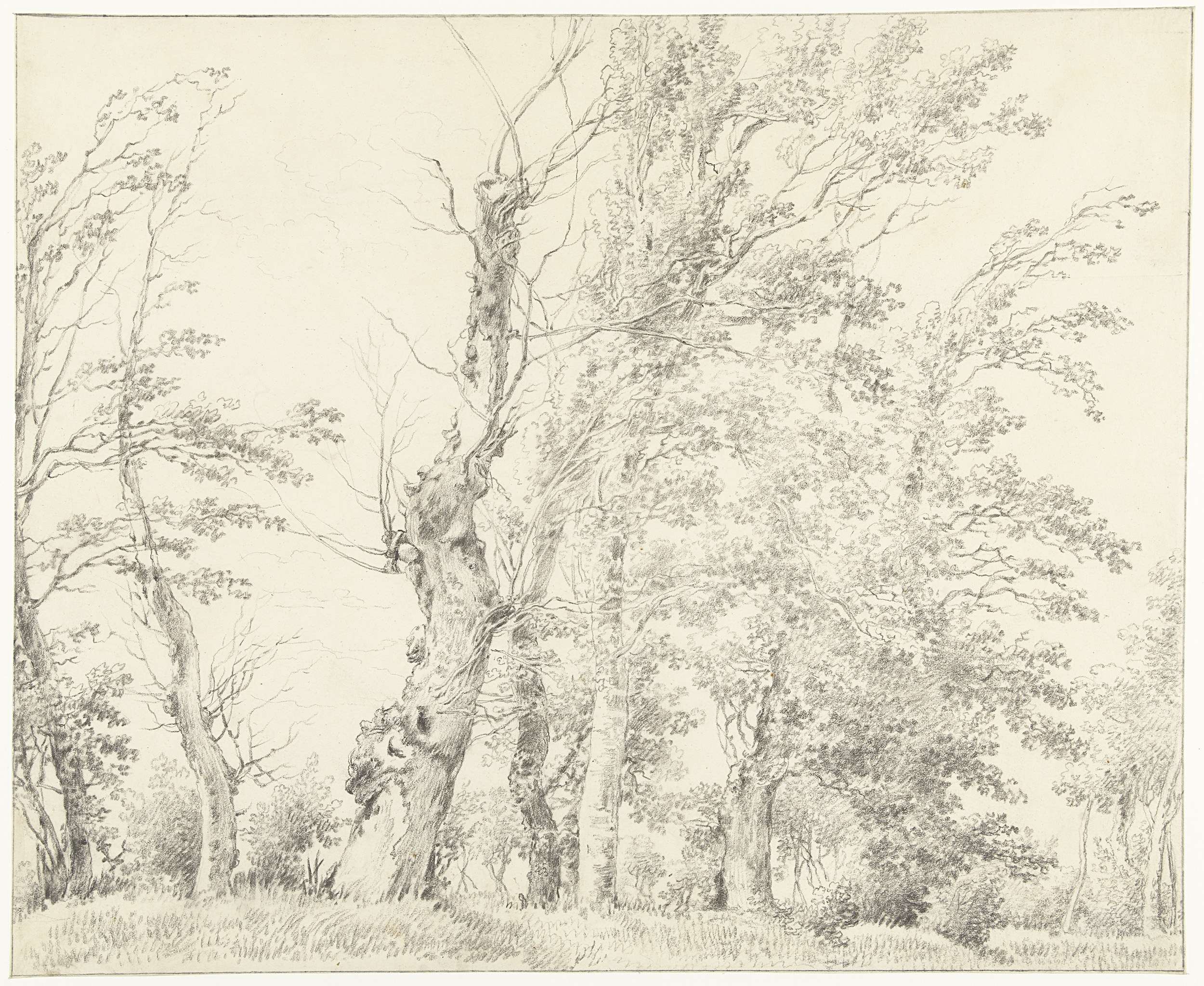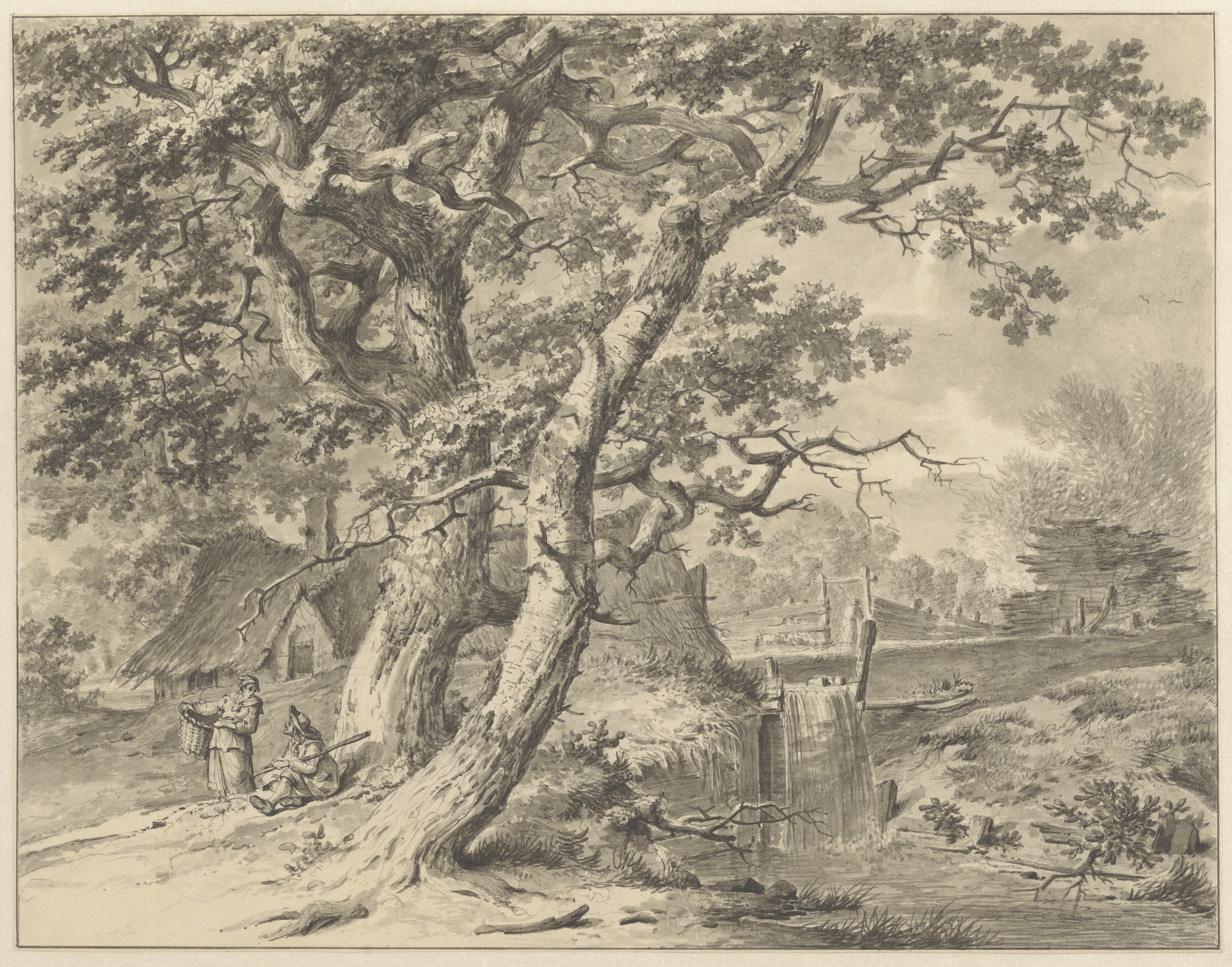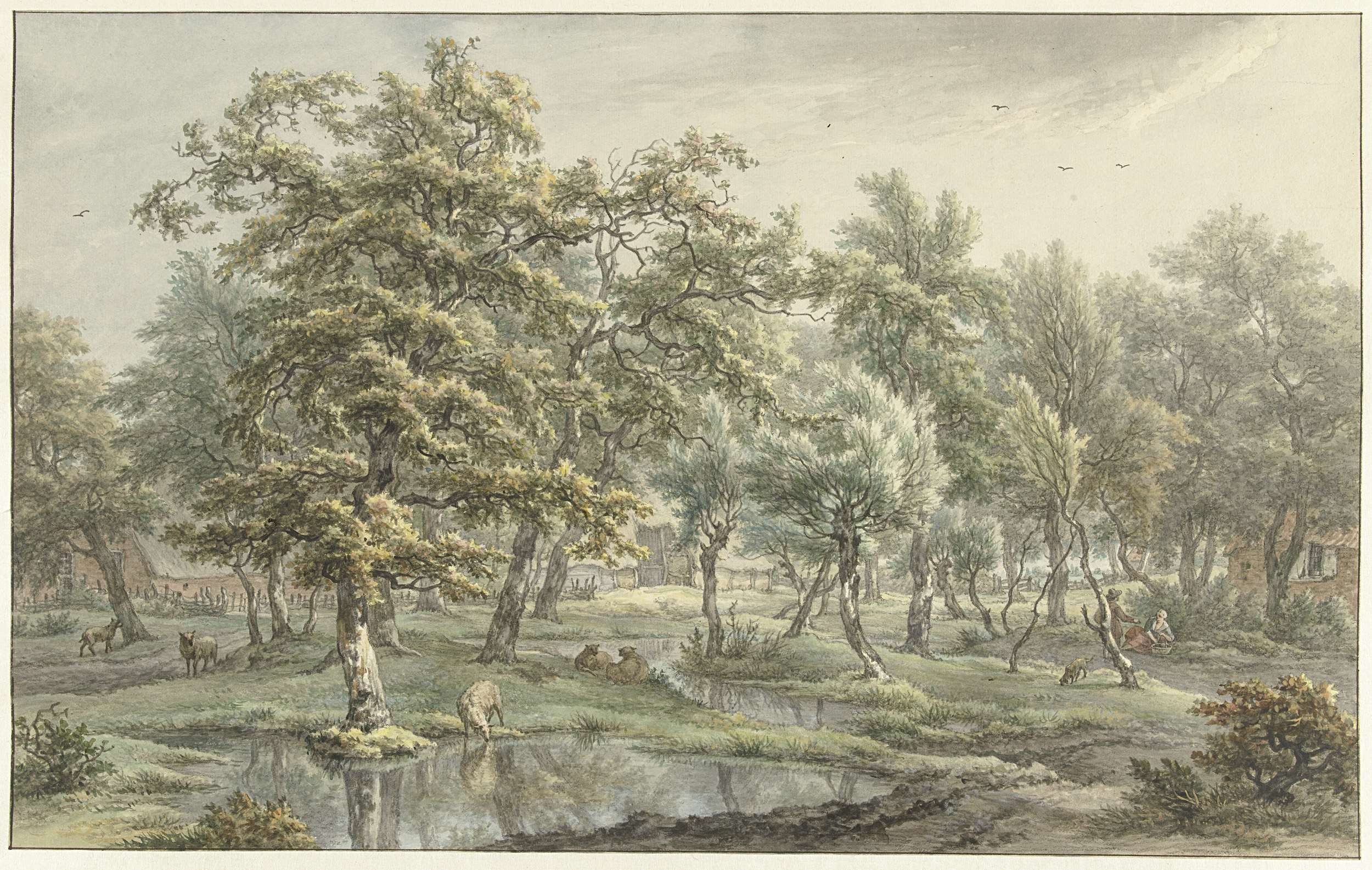 Boomrijk landschap met enkele groepjes figuren
