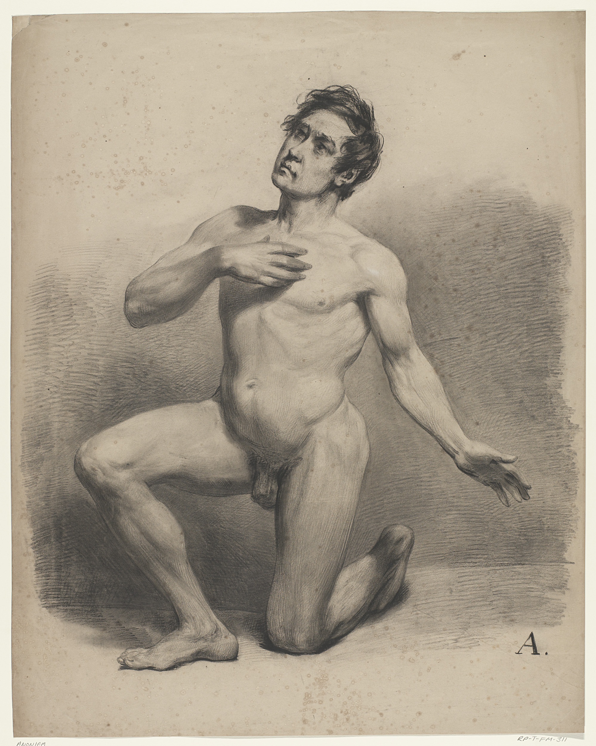 Knielend mannelijk naakt