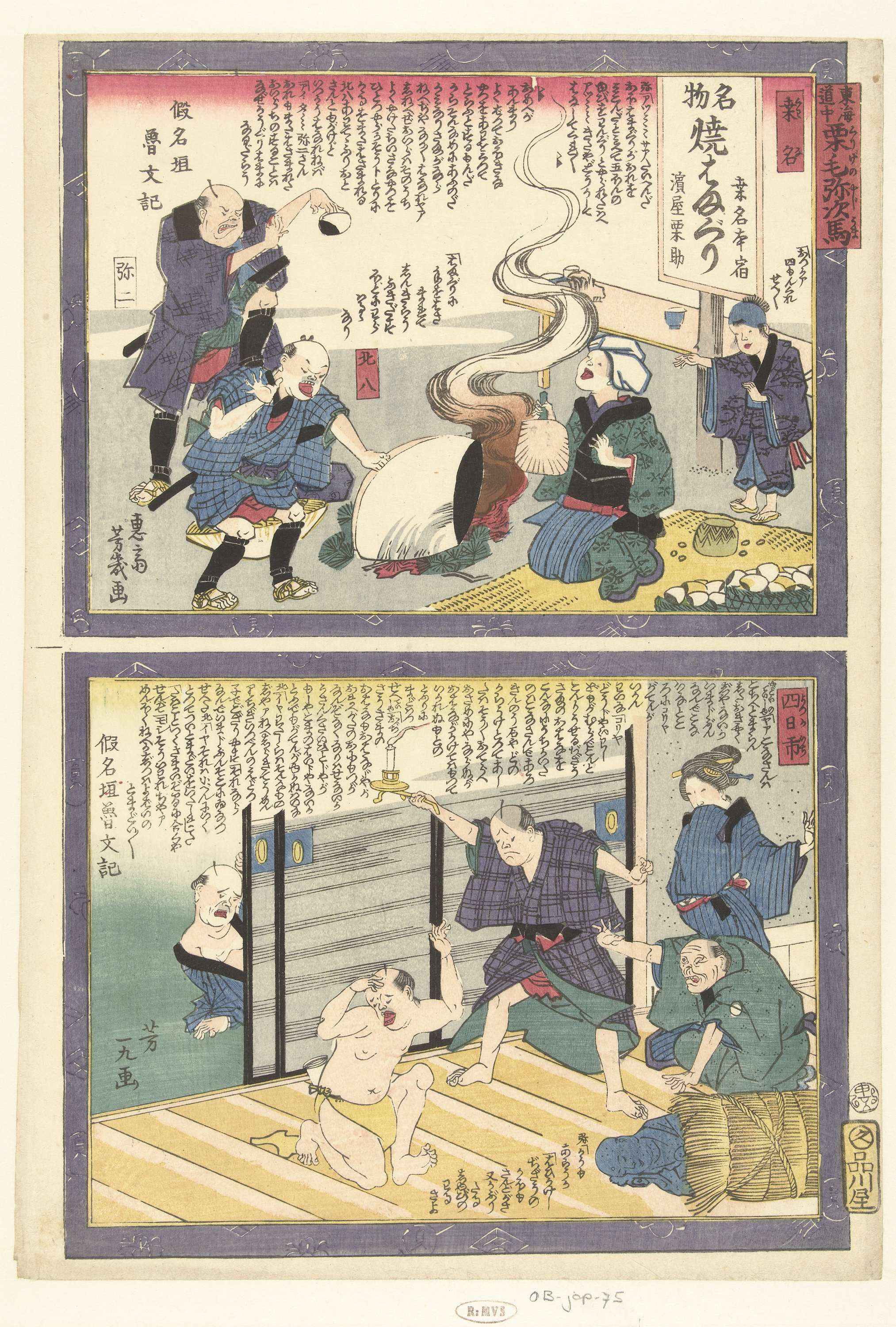 Yaoya Oshichi kijkend naar haar slapende geliefde