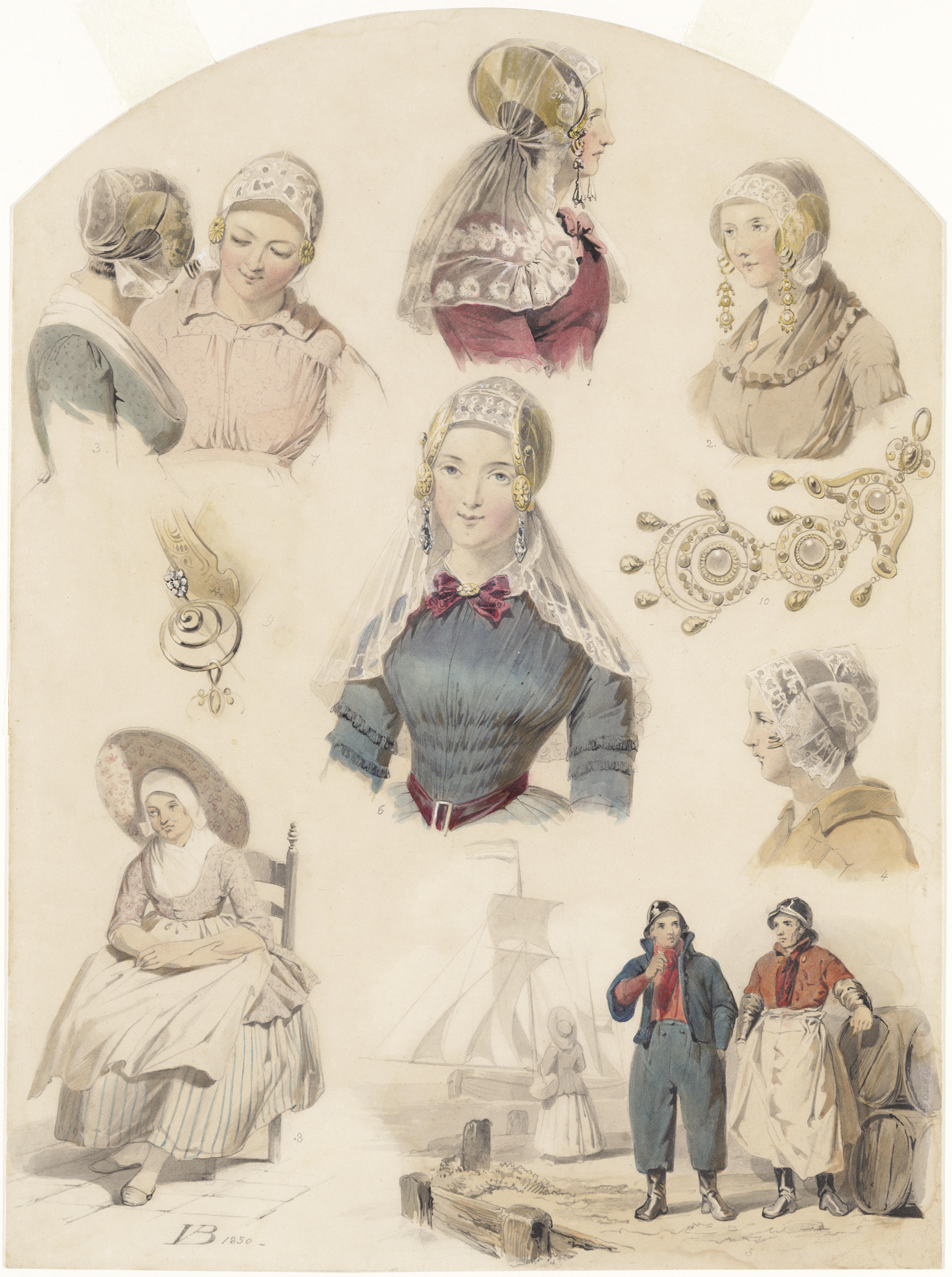 Vissers en boeren uit Huizen, circa 1850