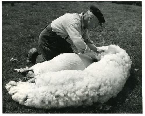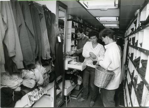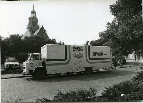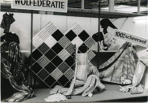 Foto in zwart-wit van de stand van de Wolfederatie o...